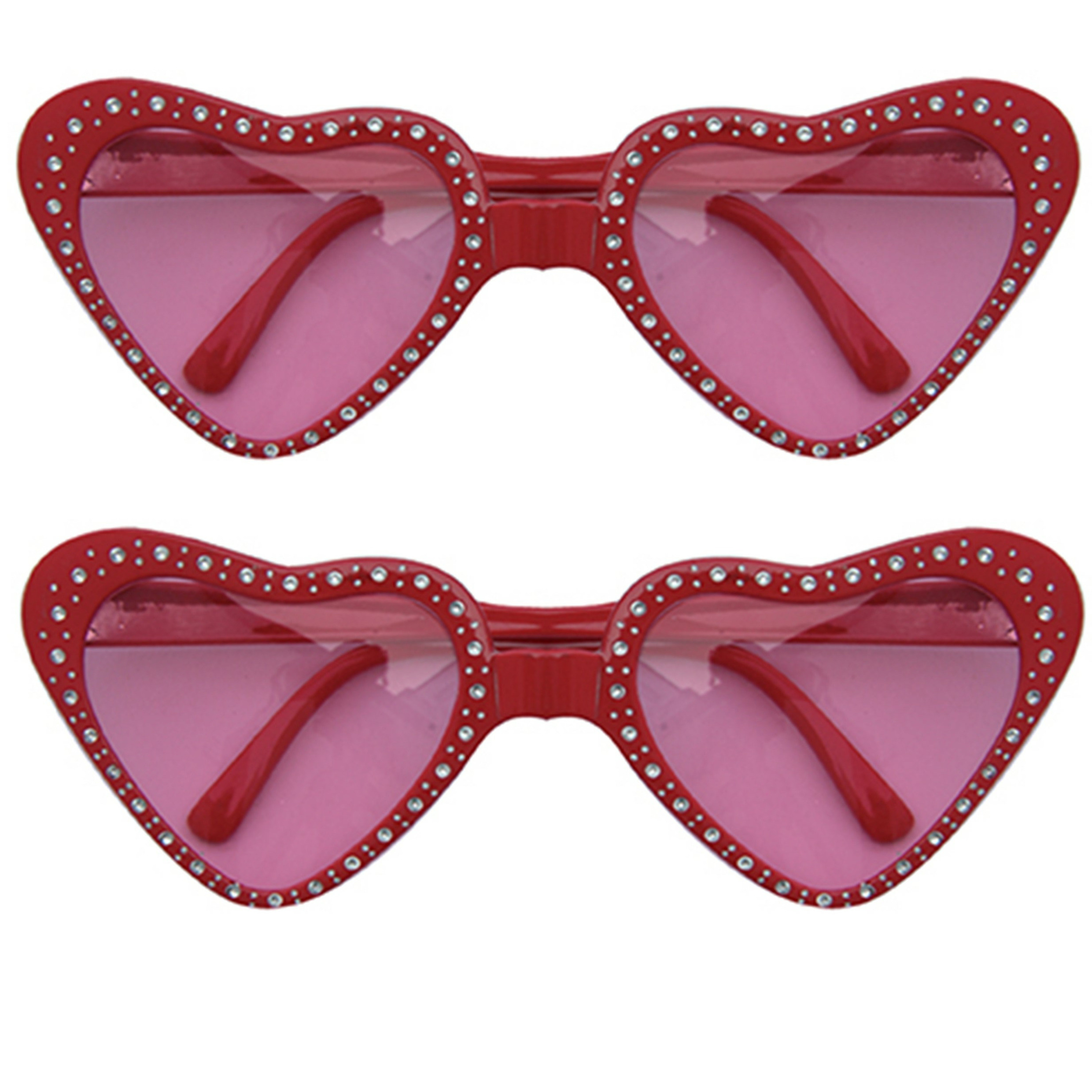 2x stuks Hippie Flower Power Sixties hartjes glazen zonnebril rood. Materiaal: metaal/plastic. Maak uw verkleedkleding set compleet met deze bijpassende party brillen. Ook goed voor Valentijn.