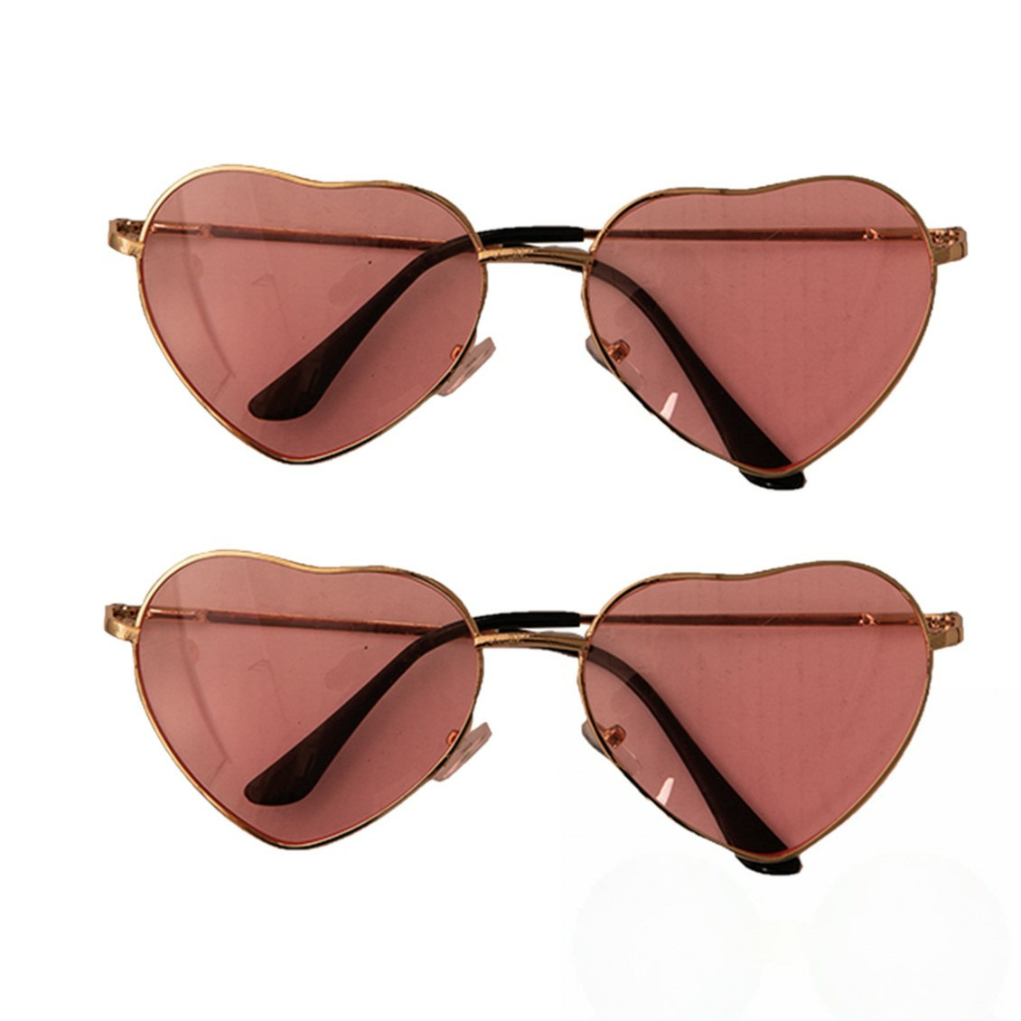 2x stuks Hippie Flower Power Sixties hartjes glazen zonnebril roze. Materiaal: metaal/plastic. Maak uw verkleedkleding set compleet met deze bijpassende party brillen.
