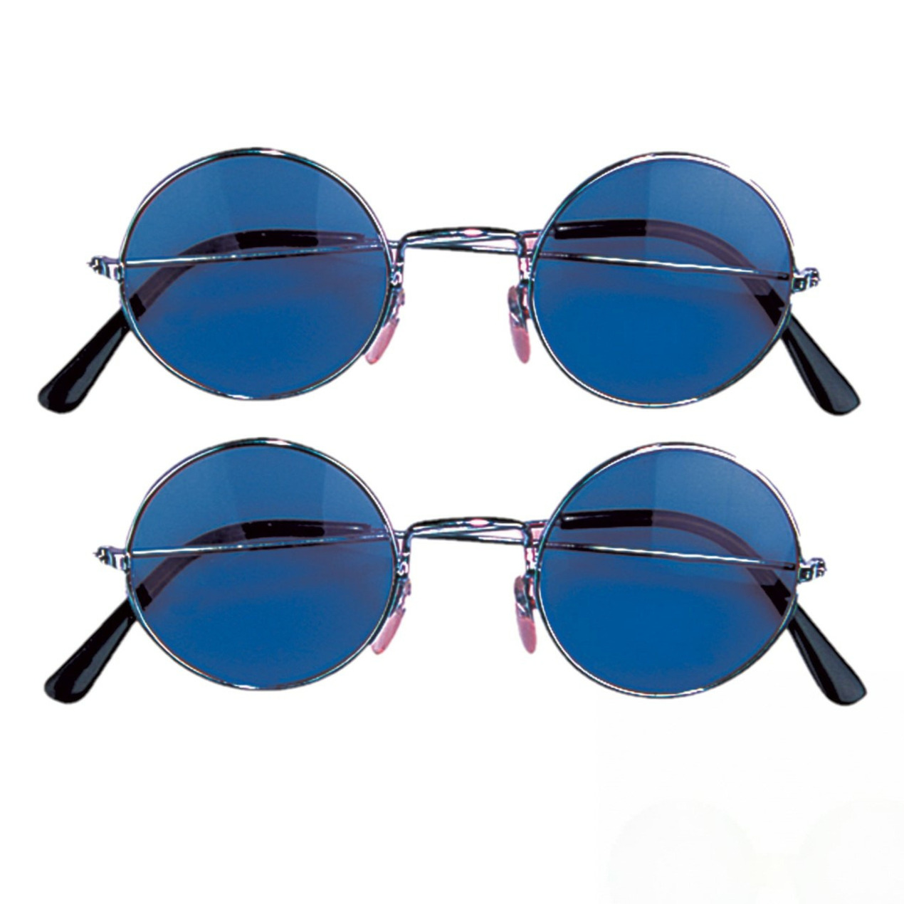 2x stuks Hippie Flower Power Sixties ronde glazen zonnebril blauw. Materiaal: metaal/plastic. Maak uw verkleedkleding set compleet met deze bijpassende party brillen.