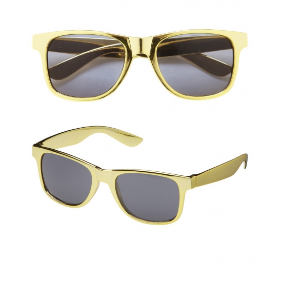 4x stuks carnaval verkleed zonnebril/party bril met goud kleurig montuur. Geschikt voor volwassenen. Disco/Eighties/Pimp/Gangster/Diva/VIP verkleed thema.