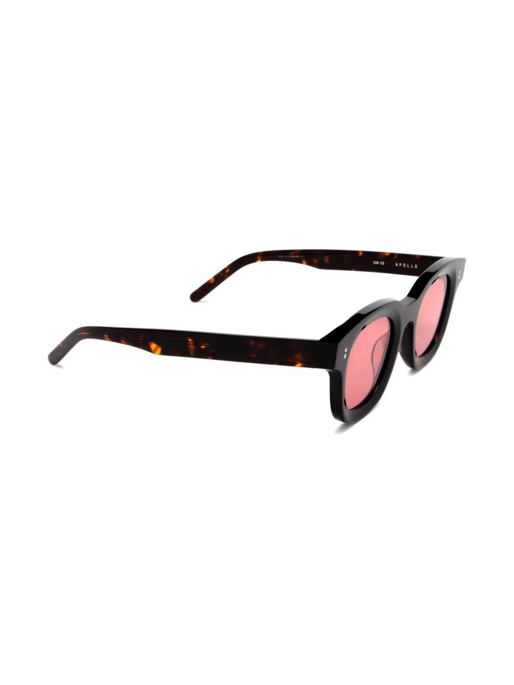 bruin acetaat vierkant montuur rode glazen schildpad montuur klinknageldetails rechte pootjes gebogen uiteinden Deze bril wordt verkocht met een beschermhoes.