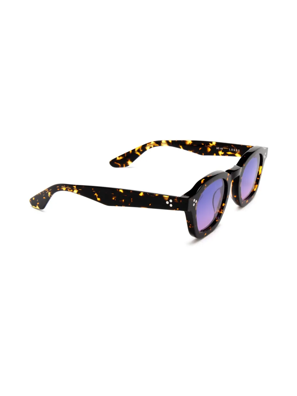 bruin acetaat rond montuur glazen met kleurverloop schildpad montuur klinknageldetails rechte pootjes gebogen uiteinden Deze bril wordt verkocht met een beschermhoes.