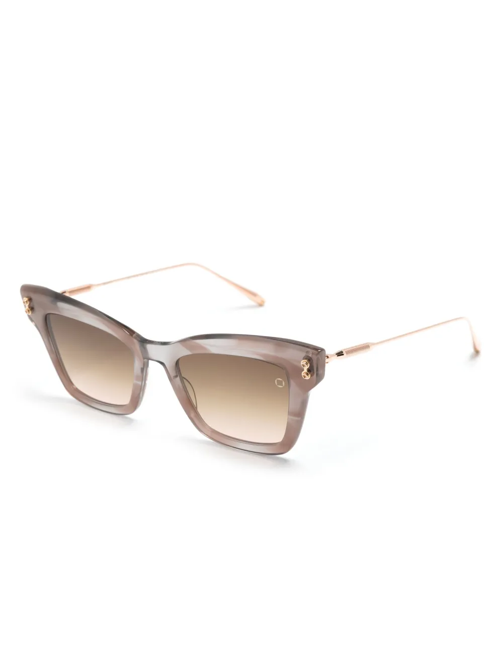 grijs/lichtbruin acetaat cat-eye montuur glazen met kleurverloop bruine glazen glazen met UV-bescherming lens sticker rechte pootjes gebogen uiteinden