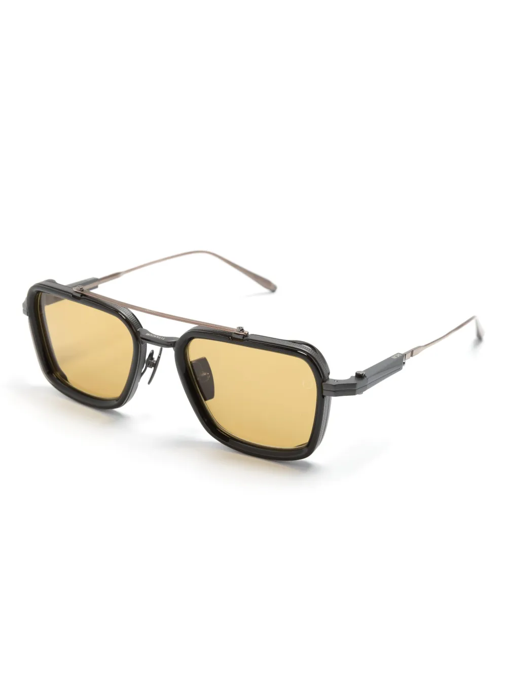 zwart dubbele neusbrug bruine glazen piloten montuur neuskussentjes logoprint op het pootje Deze bril wordt verkocht met een beschermhoes.