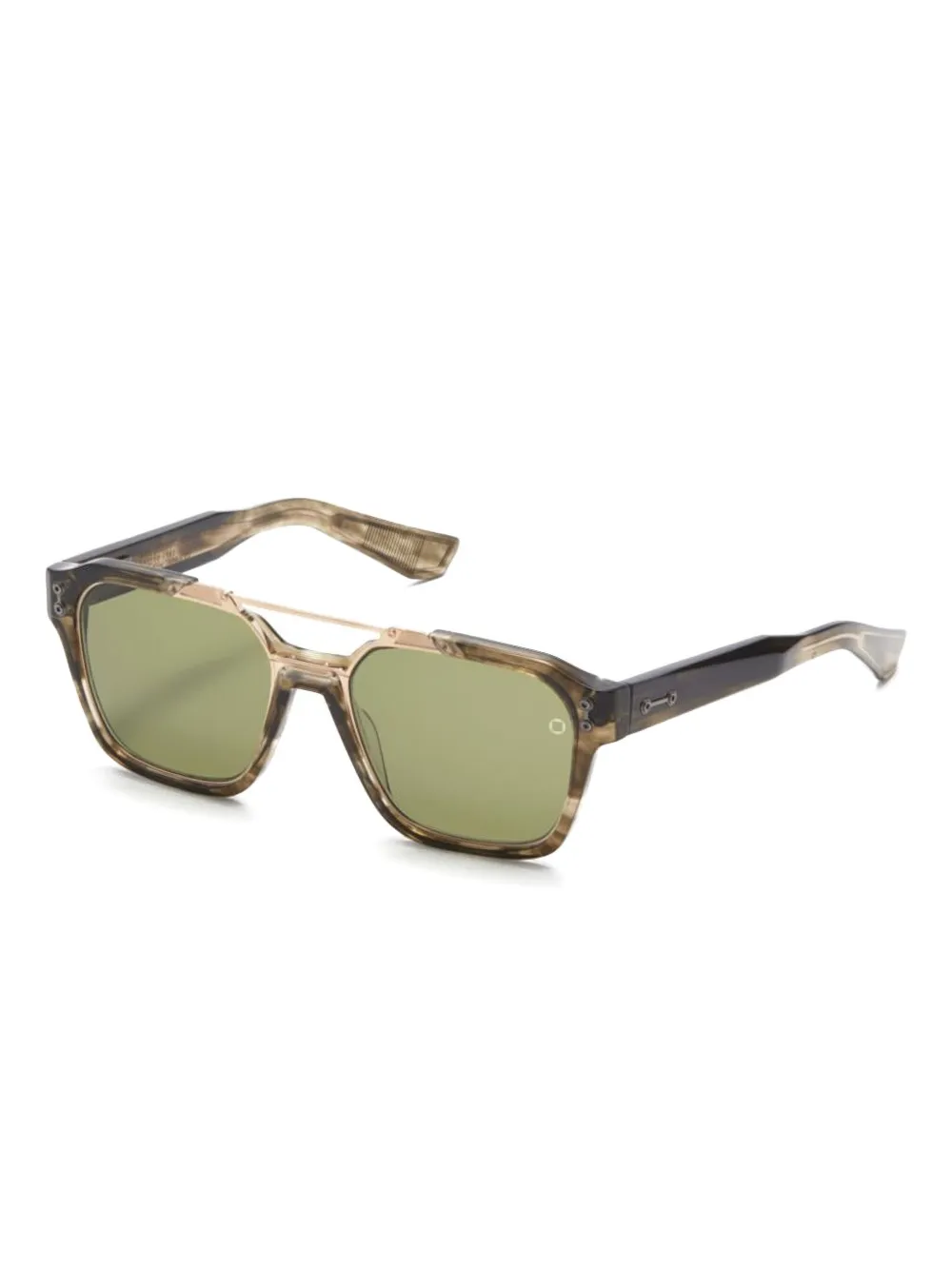 bruin vierkant montuur goudkleurig metalen detail gekleurde glazen rechte pootjes gebogen uiteinden Deze bril wordt verkocht met een beschermhoes.