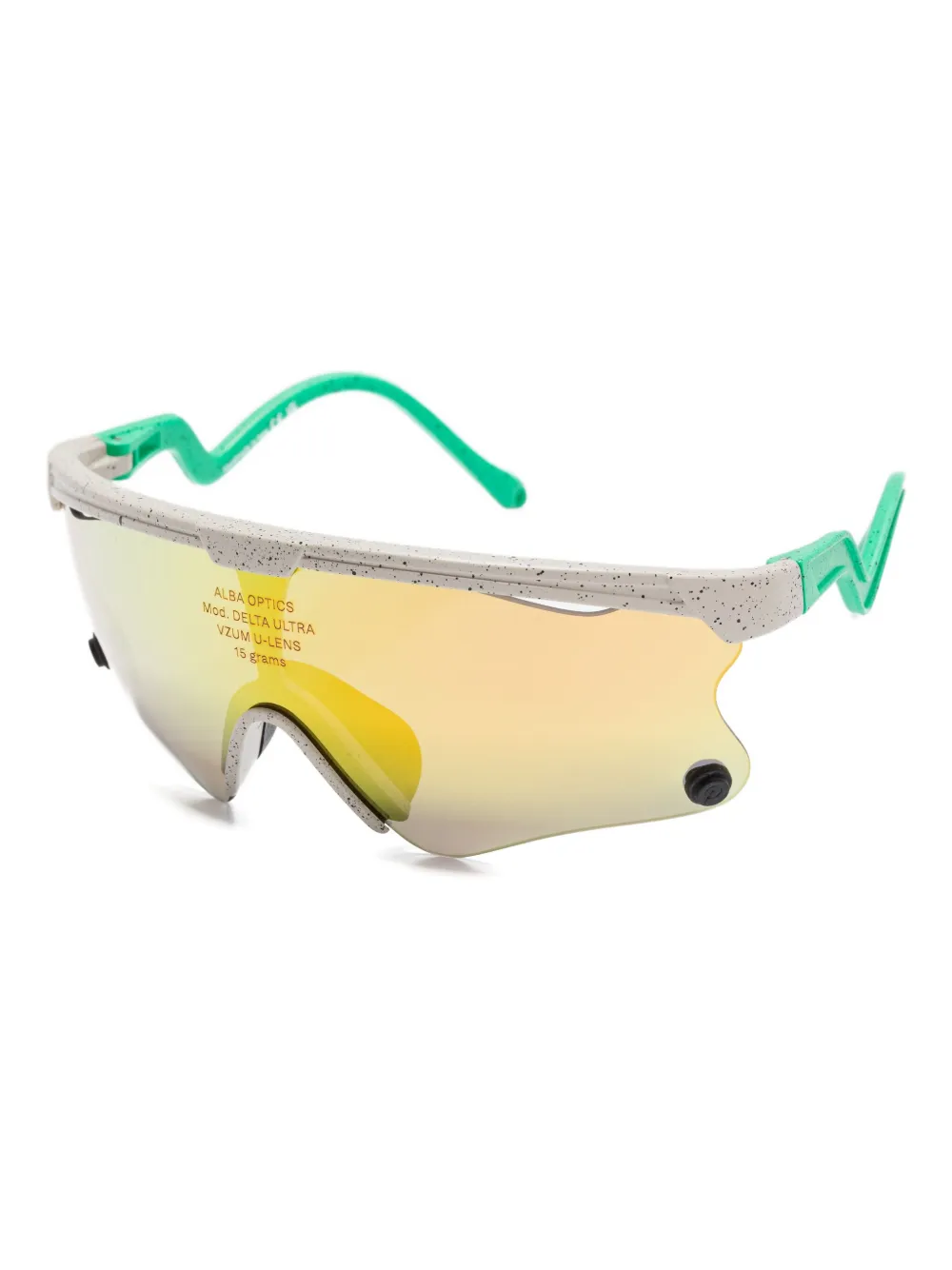 grijs gespikkeld montuur groene tempels acetaat geometrisch montuur Deze bril wordt verkocht met een beschermhoes.