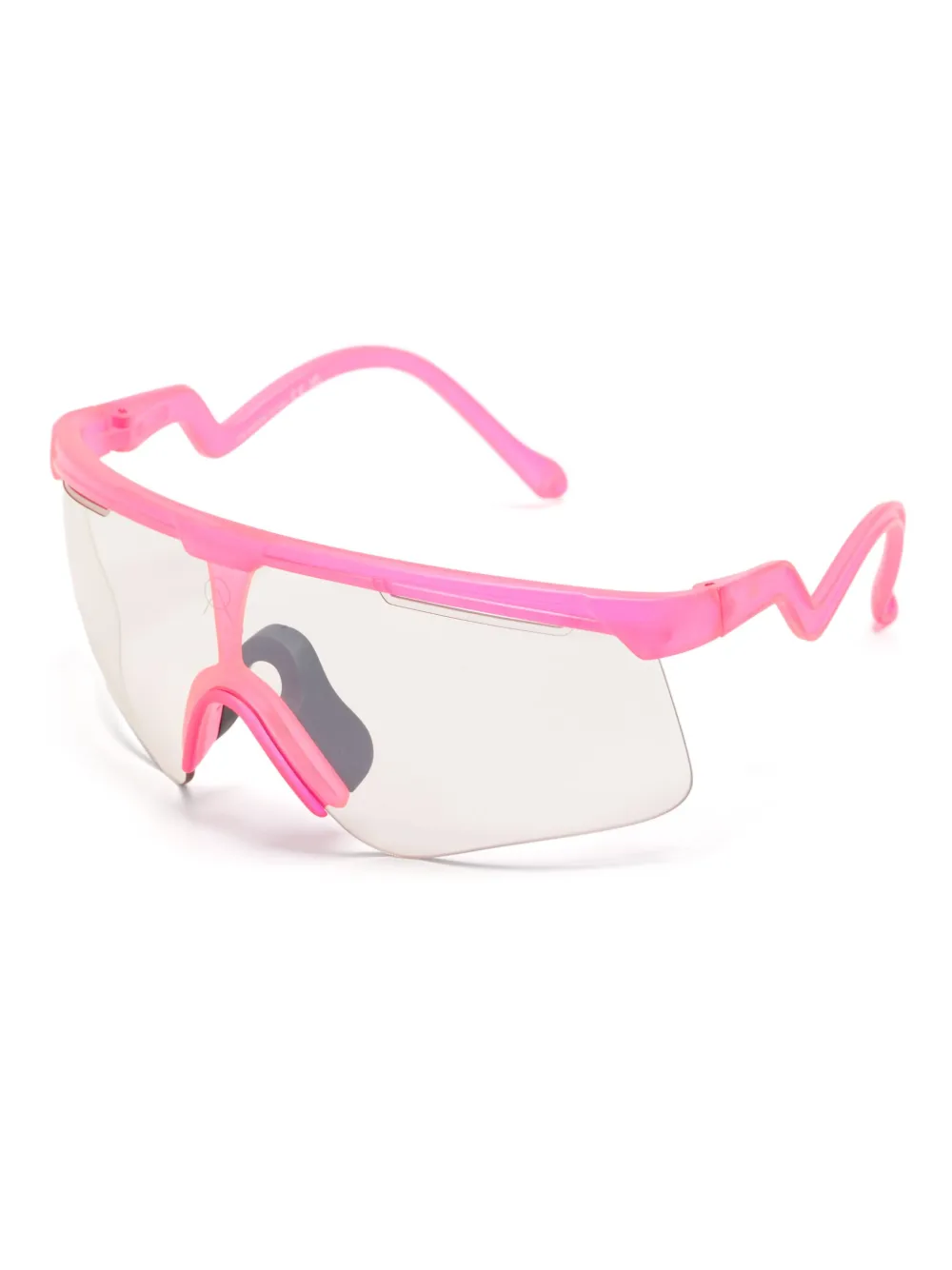 kauwgomroze shield montuur gewelfde pootjes gebogen uiteinden Deze bril wordt verkocht met een beschermhoes.