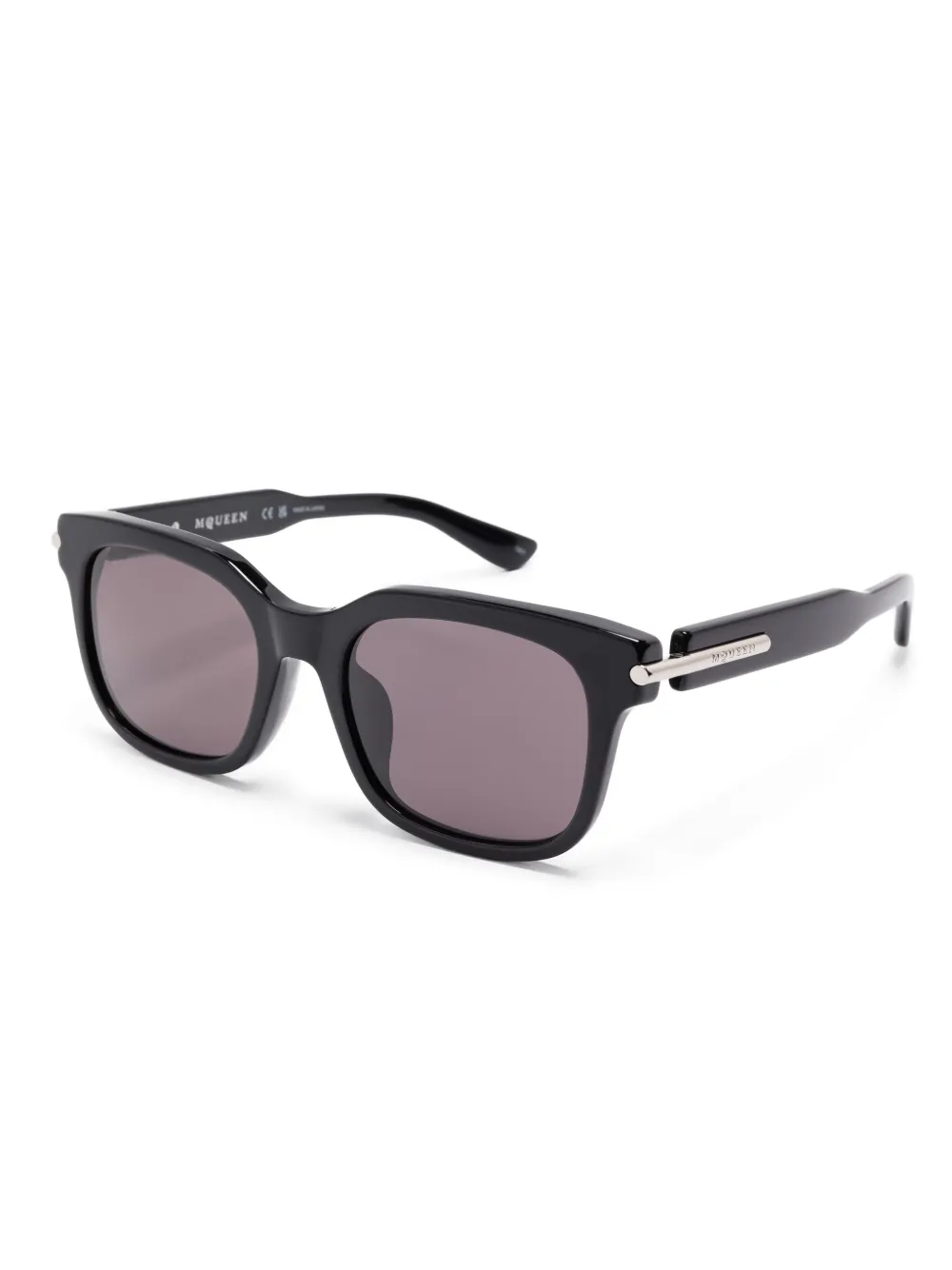 zwart vierkant montuur gekleurde glazen gebogen uiteinden Deze bril wordt verkocht met een beschermhoes.