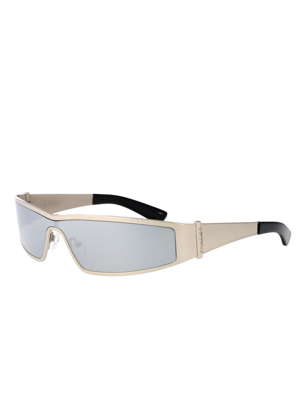 zilvergrijze glazen hoekig montuur breed montuur gedetailleerde zijpoten glad design geen zichtbare branding Deze bril wordt verkocht met een beschermhoes.
