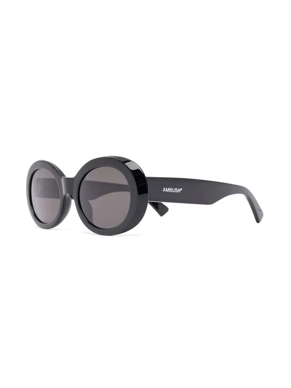 Ovaal montuur, gekleurde glazen, rechte pootjes, glazen met UV-bescherming en logoplakkaat op het pootje. Deze bril wordt verkocht met een beschermhoes..