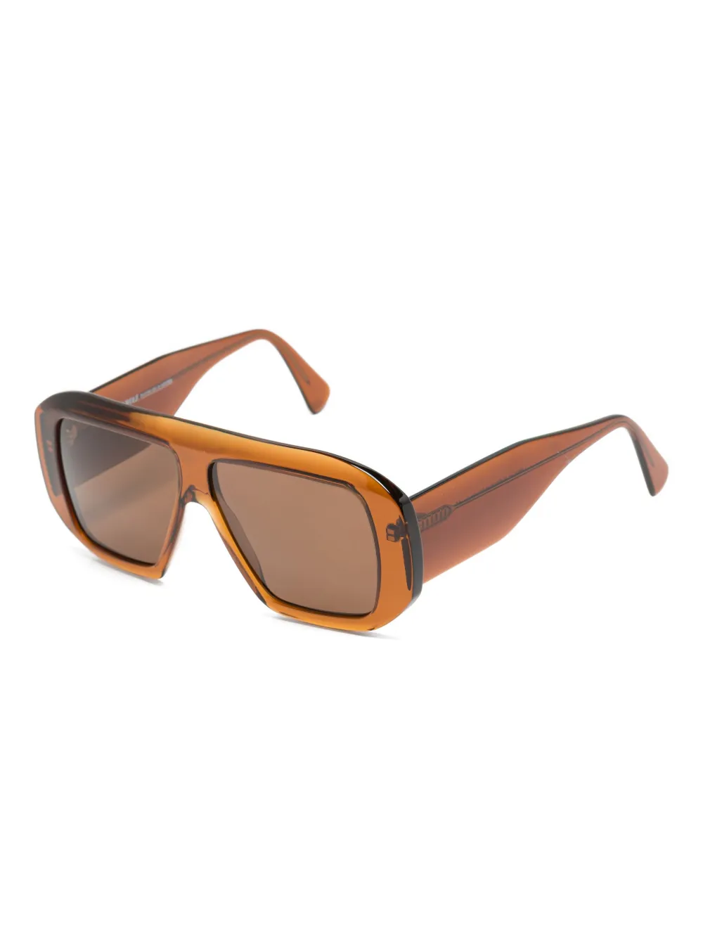 bruin rechthoekig montuur gekleurde glazen Deze bril wordt verkocht met een beschermhoes.