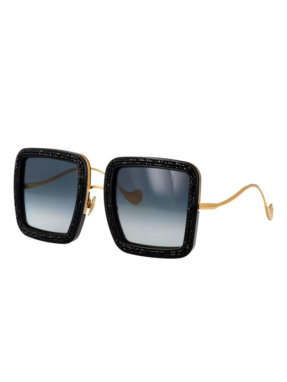 goudkleurig/zwart verfraaid met kristallen gewelfde pootjes glazen met kleurverloop vierkant montuur Deze bril wordt verkocht met een beschermhoes.