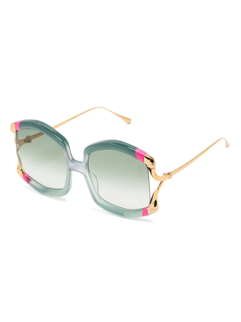 lichtgroen contrasterende rand oversized montuur gebogen uiteinden Deze bril wordt verkocht met een beschermhoes.