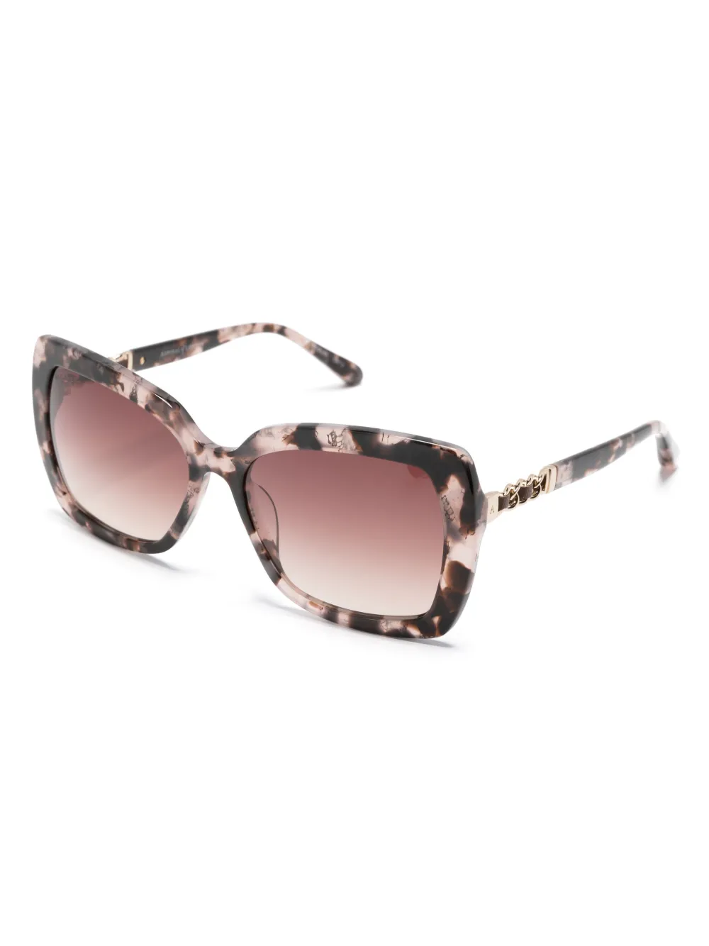 roze/bruin acetaat schildpad montuur glazen met UV-bescherming pootje met gegraveerd logo leer en ketting-schakel details op de arm rechte poten met gebogen uiteinden Deze bril wordt verkocht met een beschermhoes.