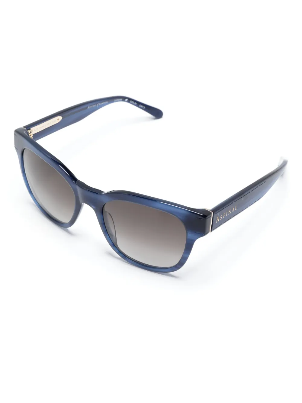 middernachtblauw acetaat abstract patroon vierkant montuur grijze glazen glazen met UV-bescherming lens sticker pootje met gegraveerd logo rechte poten met gebogen uiteinden Deze bril wordt verkocht met een beschermhoes.
