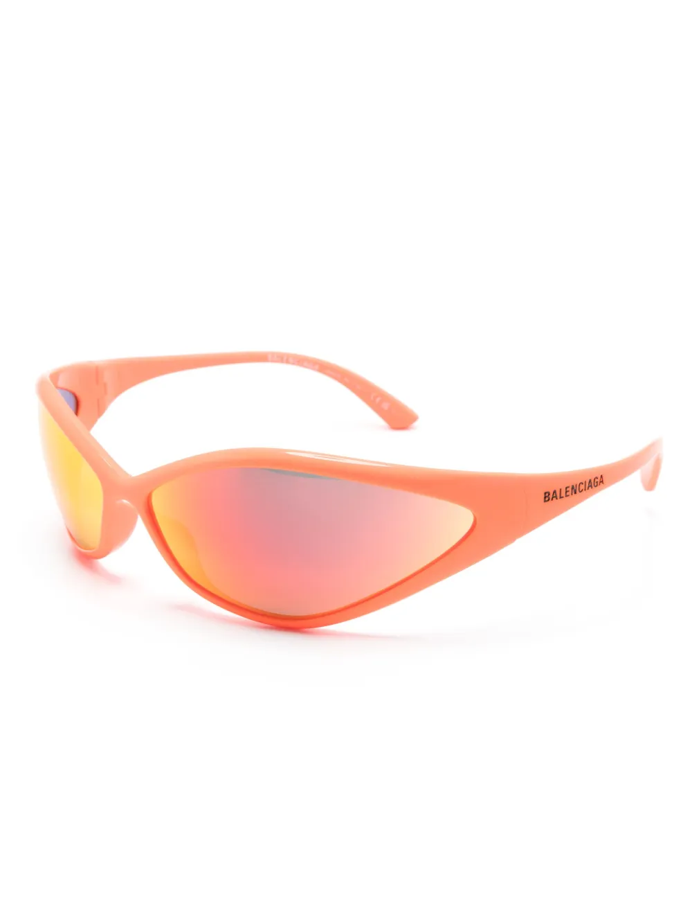 Oranje, acetaat, logo-reliëf aan de zijkant, glazen met kleurverloop en rechte pootjes. Deze bril wordt verkocht met een beschermhoes..
