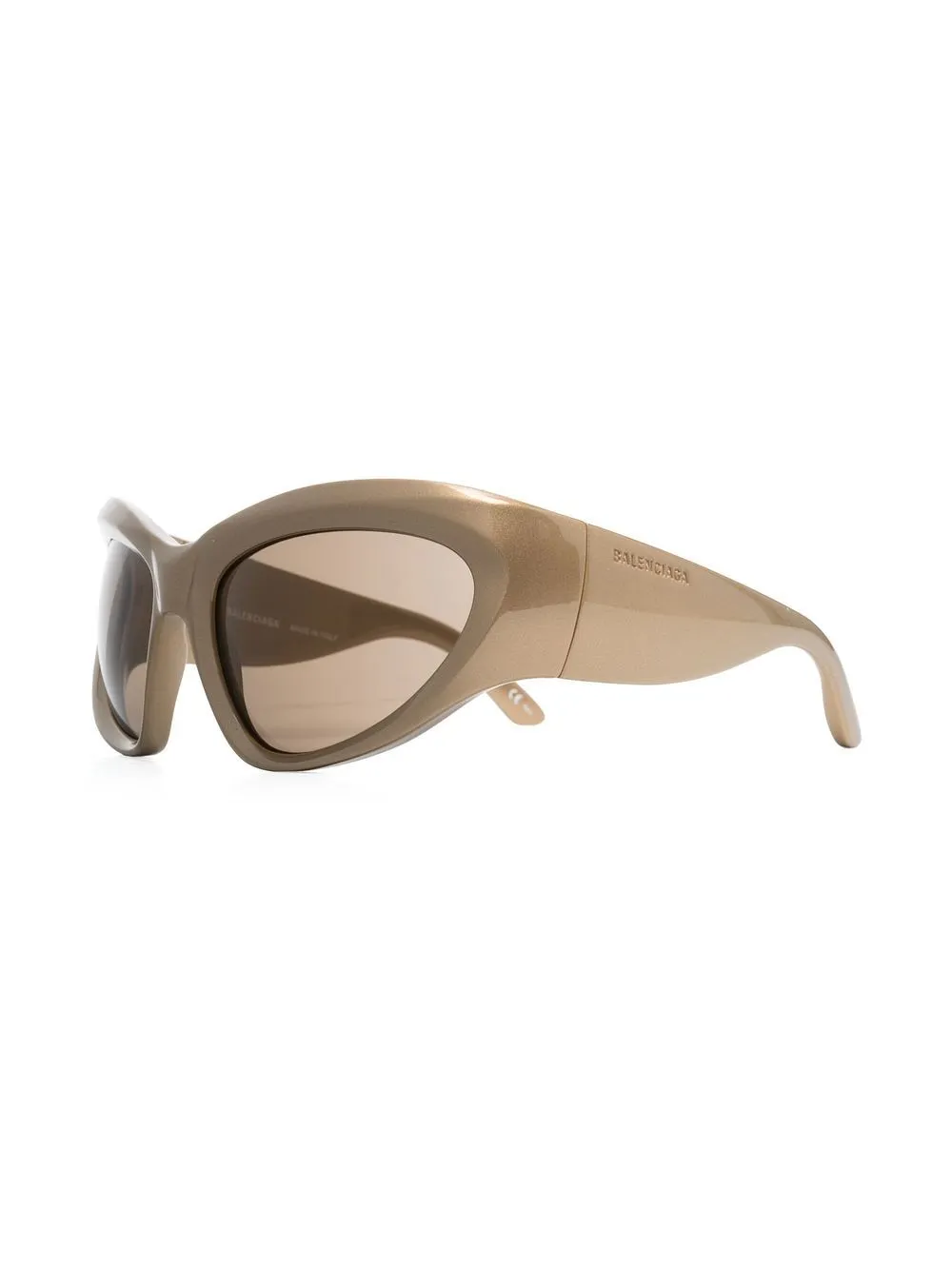Goudkleurig, cat-eye montuur, gekleurde glazen en rechte pootjes. Deze bril wordt verkocht met een beschermhoes..