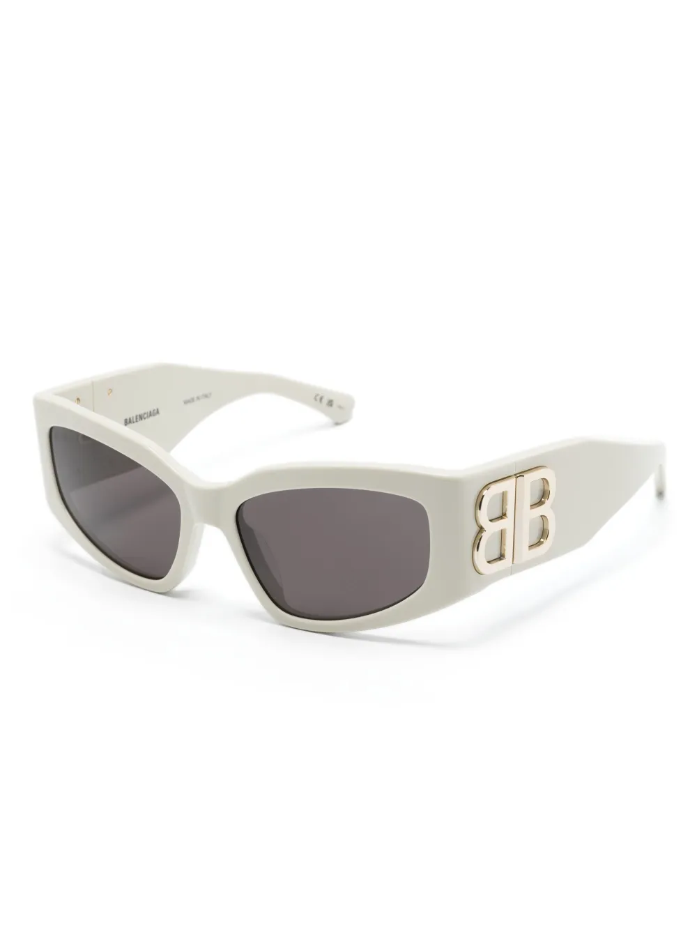 ivoorwit acetaat cat-eye montuur grijze glazen logoplakkaat op de poot oversized pootjes gebogen uiteinden Deze bril wordt verkocht met een beschermhoes.
