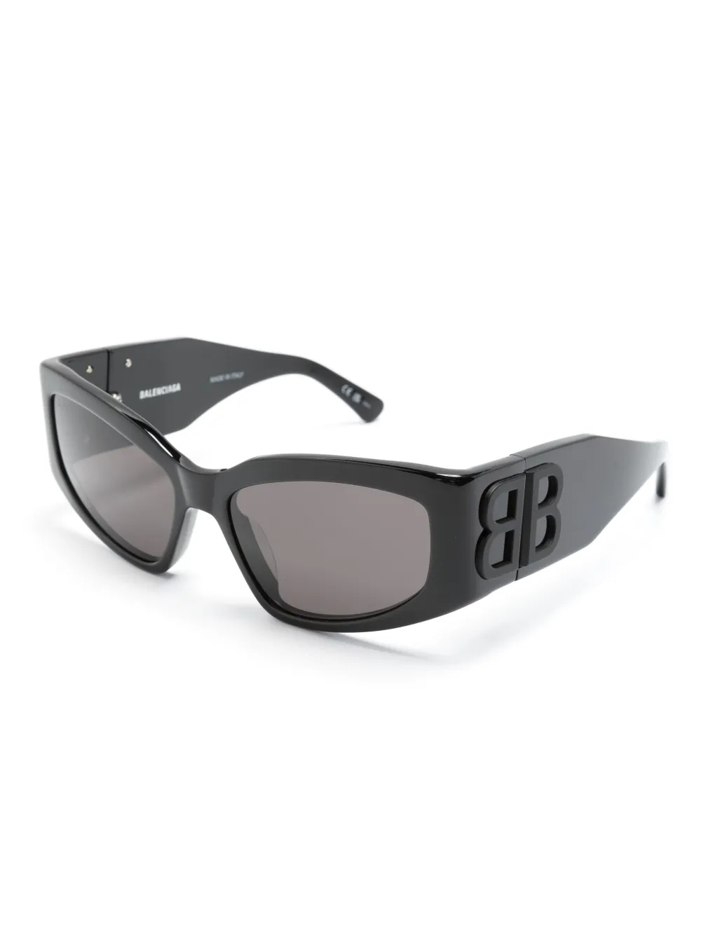 grijze glazen gebogen uiteinden zwart acetaat glazen met UV-bescherming matte-effect oversized pootjes cat-eye montuur lens sticker logoplakkaat Deze bril wordt verkocht met een beschermhoes.
