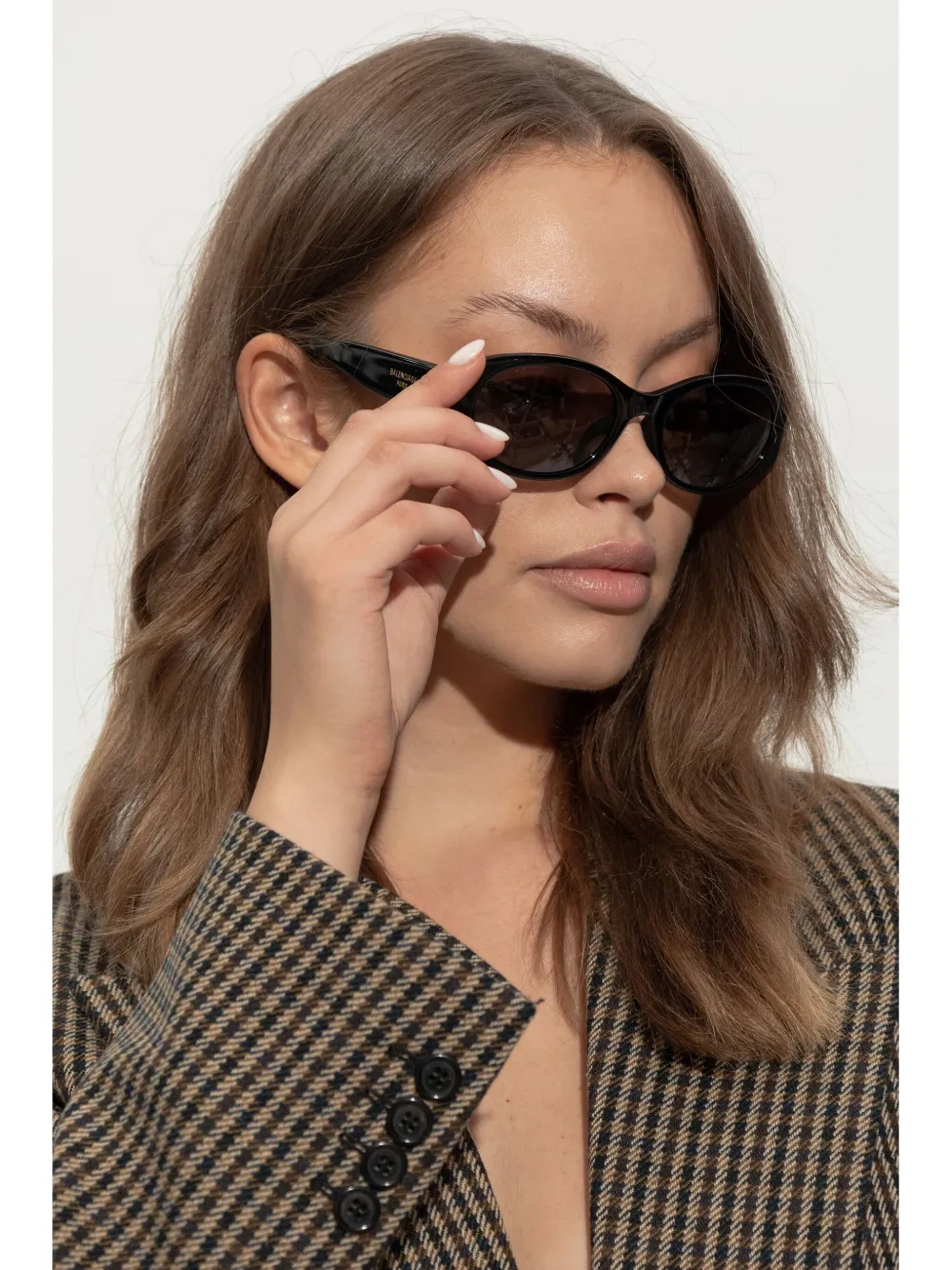 zwart acetaat ovaal montuur glazen met UV-bescherming grijze glazen logoprint op de brillenpoot rechte pootjes gebogen uiteinden Deze bril wordt verkocht met een beschermhoes.