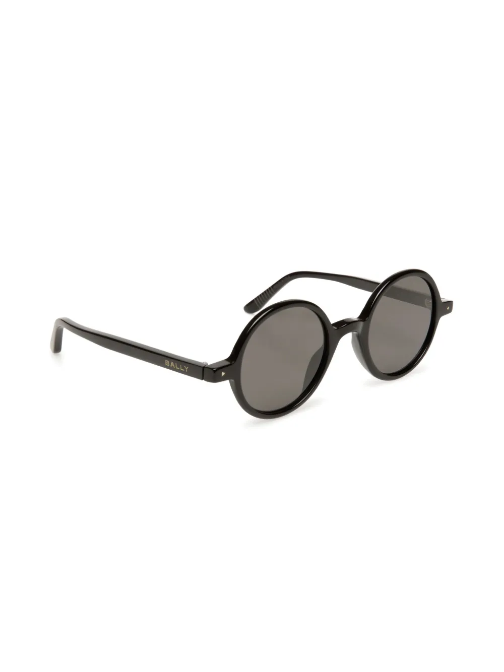 zwart acetaat glanzende finish rond montuur grijze glazen glazen met UV-bescherming klinknageldetails logoprint op het pootje rechte pootjes gebogen uiteinden Deze bril wordt verkocht met een beschermhoes.