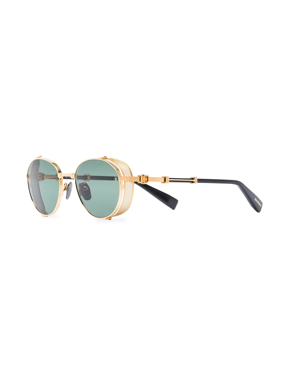 Shield-montuur, neuskussentjes, groengetinte glazen en geschulpte pootjes. We weten dat je ervoor zorgt dat jouw nieuwe aankoop niets overkomt, maar voor de zekerheid zit er een beschermende hoes bij deze bril.