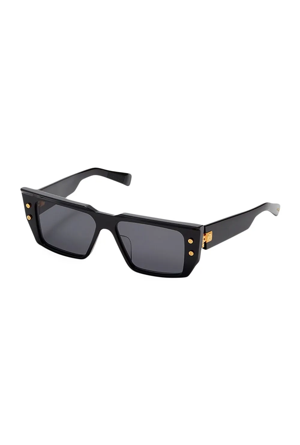 Zwart, logoplakkaat op het pootje, goudkleurig materiaal, vierkant montuur en gekleurde glazen. Deze bril wordt verkocht met een beschermhoes..