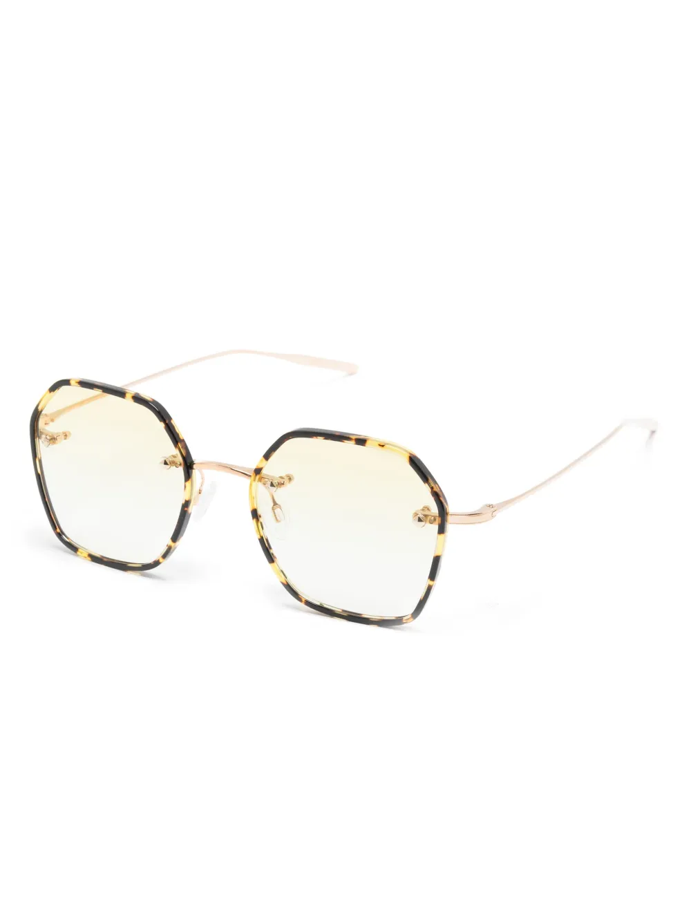 bruin/veelkleurig acetaat titanium schildpad montuur geometrisch montuur glazen met kleurverloop glazen met UV-bescherming neuskussentjes rechte pootjes gebogen uiteinden Deze bril wordt verkocht met een beschermhoes.