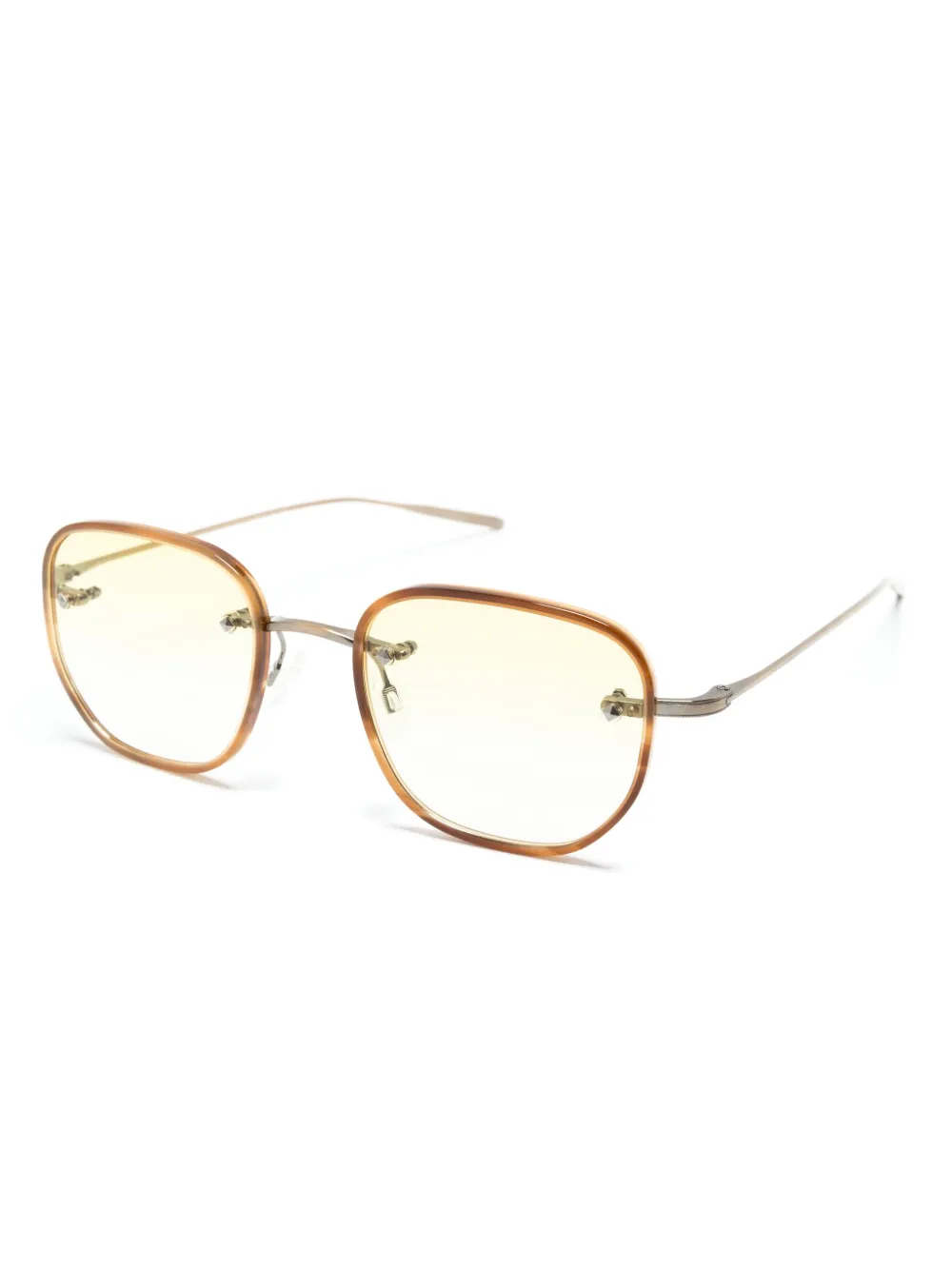 lichtbruin/koffiebruin titanium/acetaat schildpad montuur vierkant montuur glazen met kleurverloop glazen met UV-bescherming neuskussentjes rechte pootjes rechte afwerking Deze bril wordt verkocht met een beschermhoes.