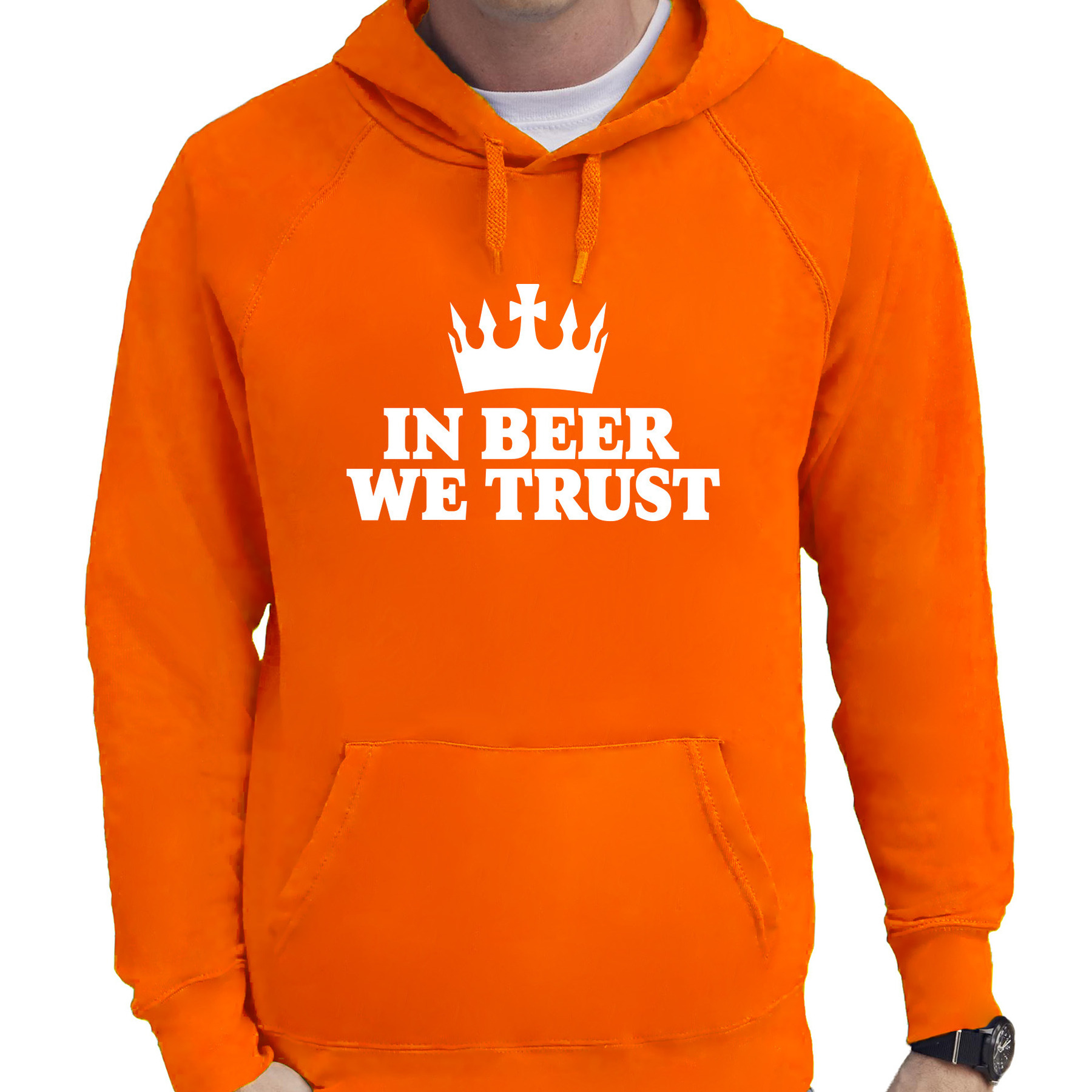 Met dit oranje Koningsdag hoodie laat jij geen twijfel bestaan over jouw prioriteiten: “In Beer We Trust!” Of je nu op de vrijmarkt rondloopt, een biertje heft op de koning of met vrienden de kroeg induikt, dit shirt zegt precies wat nodig is. De opvallende oranje kleur en speelse tekst maken het een echte blikvanger, terwijl de pasvorm zorgt voor een comfortabele en stoere look. Vertrouw op bier, vertrouw op feest ? Koningsdag wordt legendarisch! Materiaal: katoen.