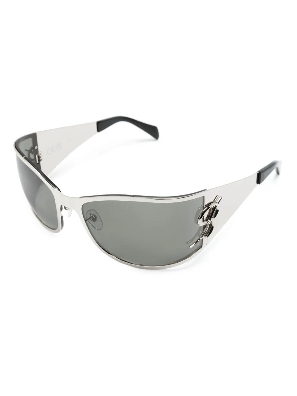 zilverkleurig metaal wrap-around montuur B monogram aan de zijkanten zwarte glazen met UV-bescherming neuskussentjes oversized pootjes gewelfde uiteinden van acetaat met logoplakkaat Deze bril wordt verkocht met een beschermhoes.