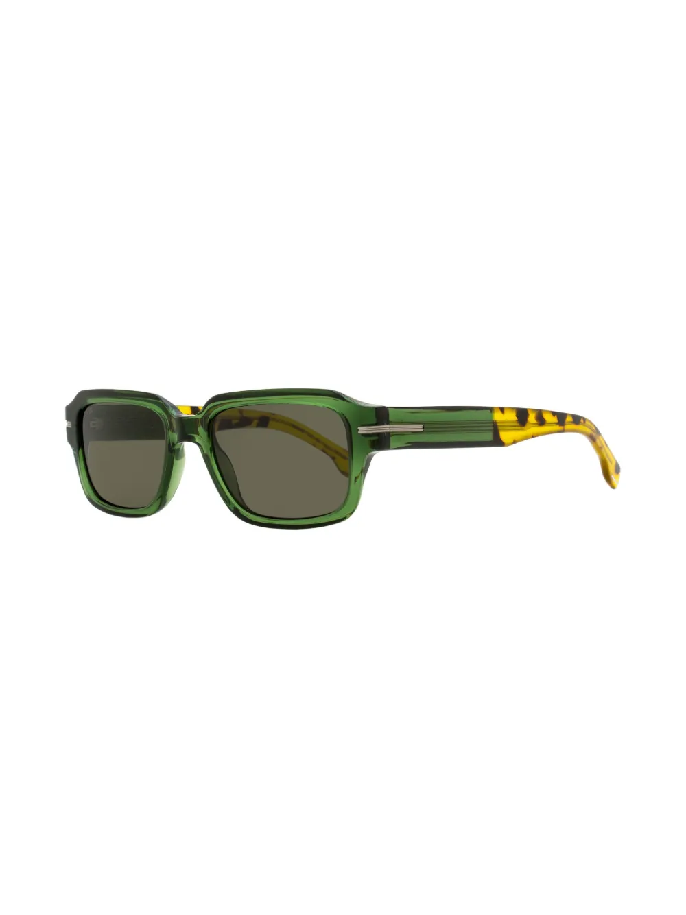 groen/veelkleurig acetaat doorzichtig montuur rechthoekig montuur grijze glazen glazen met UV-bescherming geschulpte pootjes gebogen uiteinden Deze bril wordt verkocht met een beschermhoes.
