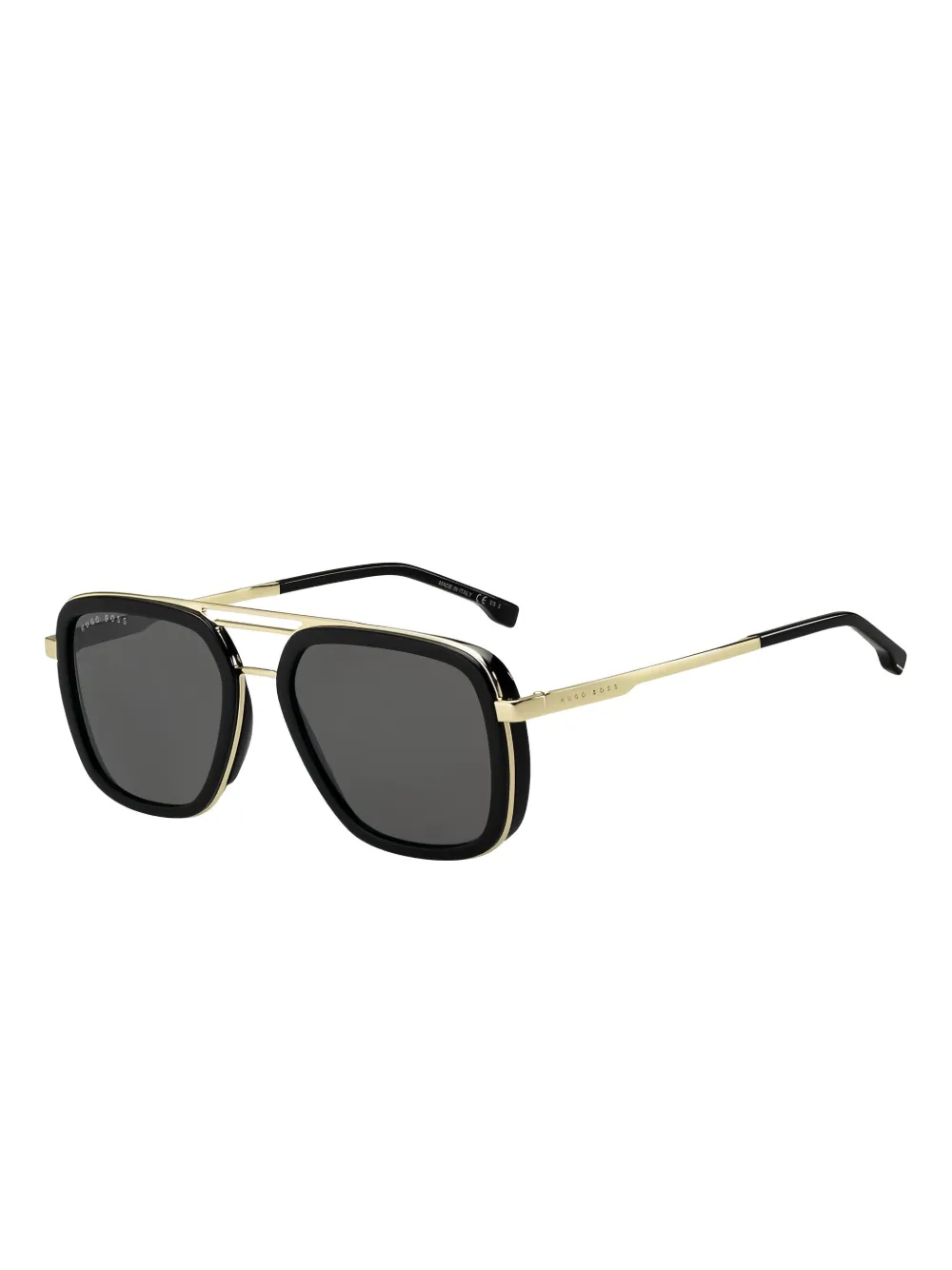 zwart gekleurde glazen goudkleurig detail vierkant montuur dubbele neusbrug Deze bril wordt verkocht met een beschermhoes.