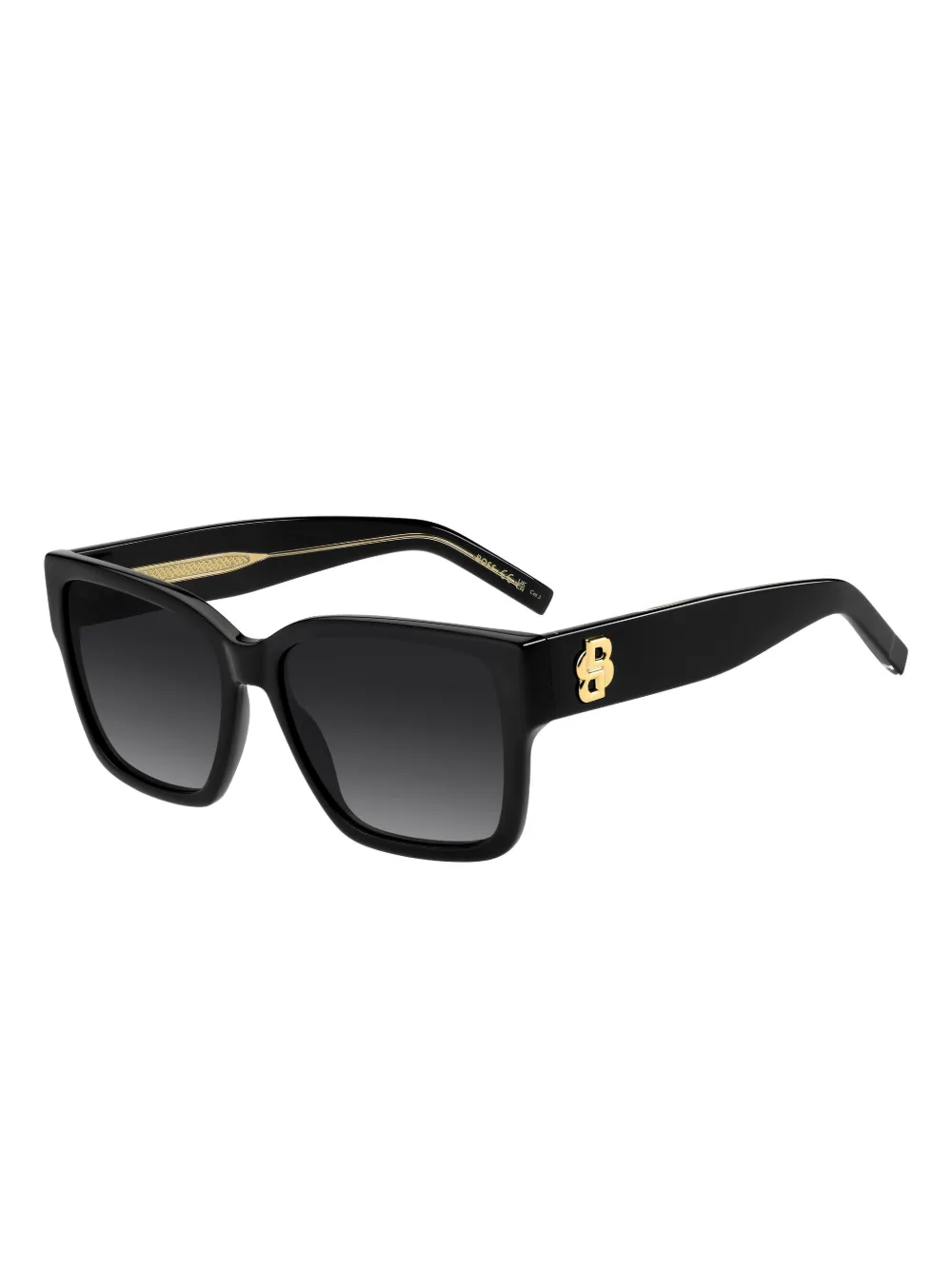 zwart vierkant montuur goudkleurig logodetail neuskussentjes glazen met kleurverloop Deze bril wordt verkocht met een beschermhoes.