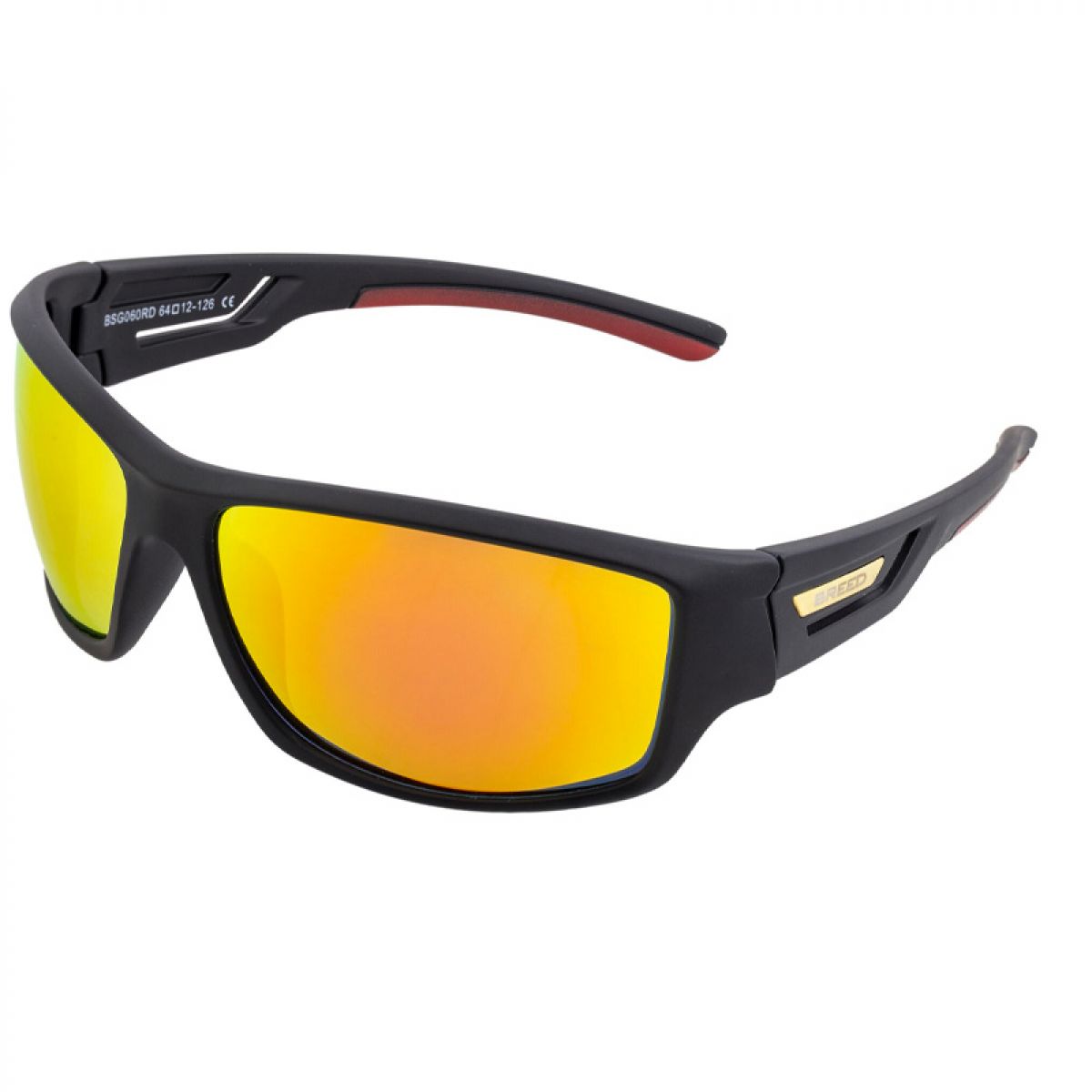 Frame: Black TR90 Wrap; Arm: Black TR90; Earpiece: Grey TR90; Lens: Red-Yellow Multi-Layer Triacetate Cellulose (TAC); Mirrored Lens: No; Gradient Lens: No; Polarization: Optical Quality; UV Protection: 100% UVA/UVB; Hinge: Standard Tr90; Adjustable Nosepads: No; Lens Width: 64mm; Lens Height: 40mm; Frame Width: 139mm; Temple Length: 126mm; Bridge Width: 12mm.
