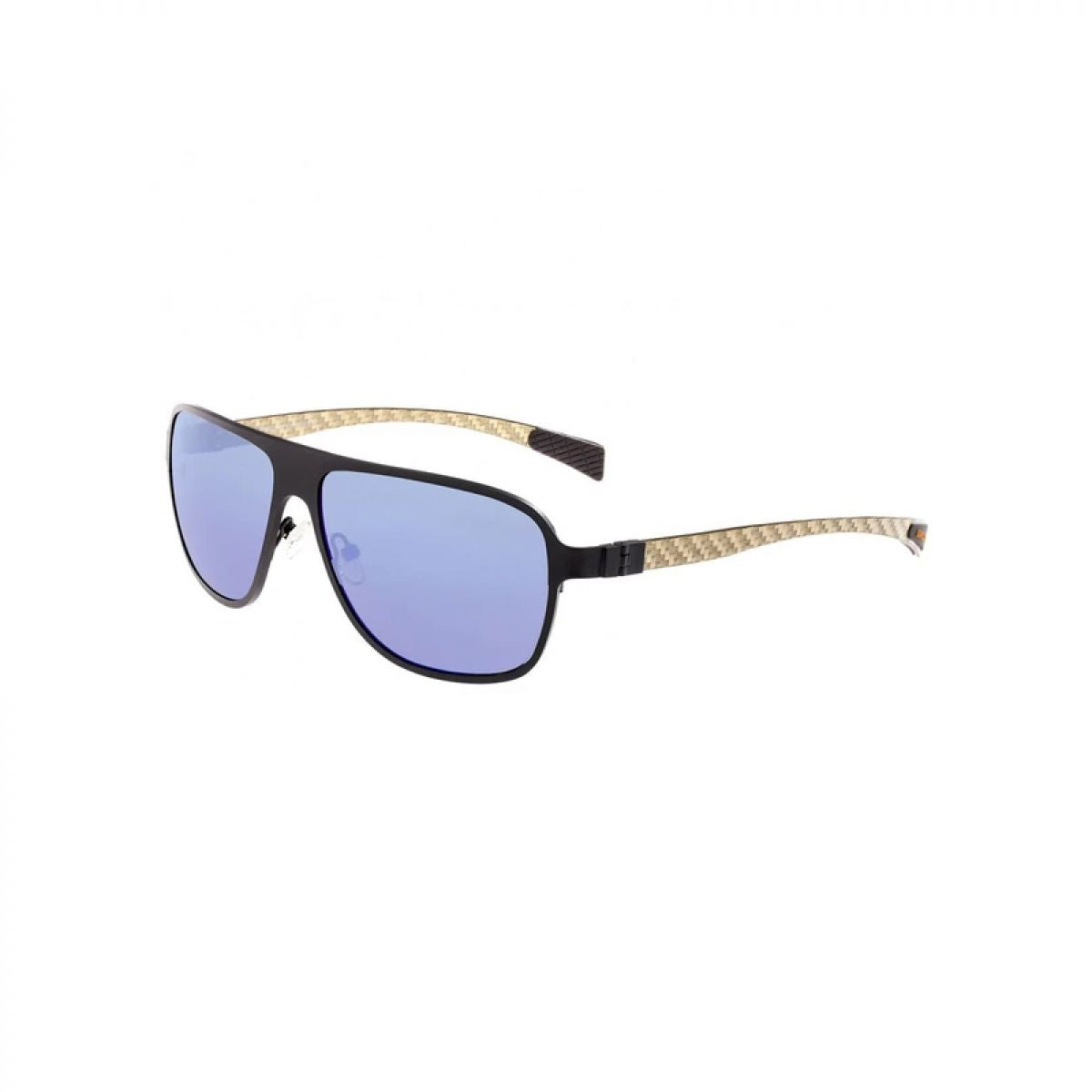 Frame: Black Titanium Aviator; Arm: Gold Carbon Fiber; Earpiece: Black Rubber; Lens: Blue Multi-Layer Triacetate Cellulose (TAC); Mirrored Lens: Yes; Gradient Lens: No; Polarization: Optical Quality; UV Protection: 100% UVA/UVB; Hinge: Spring Loaded Stainless Steel; Adjustable Nosepads: Yes; Lens Width: 61mm; Lens Height: 43mm; Frame Width: 144mm; Temple Length: 135mm; Bridge Width: 14mm.