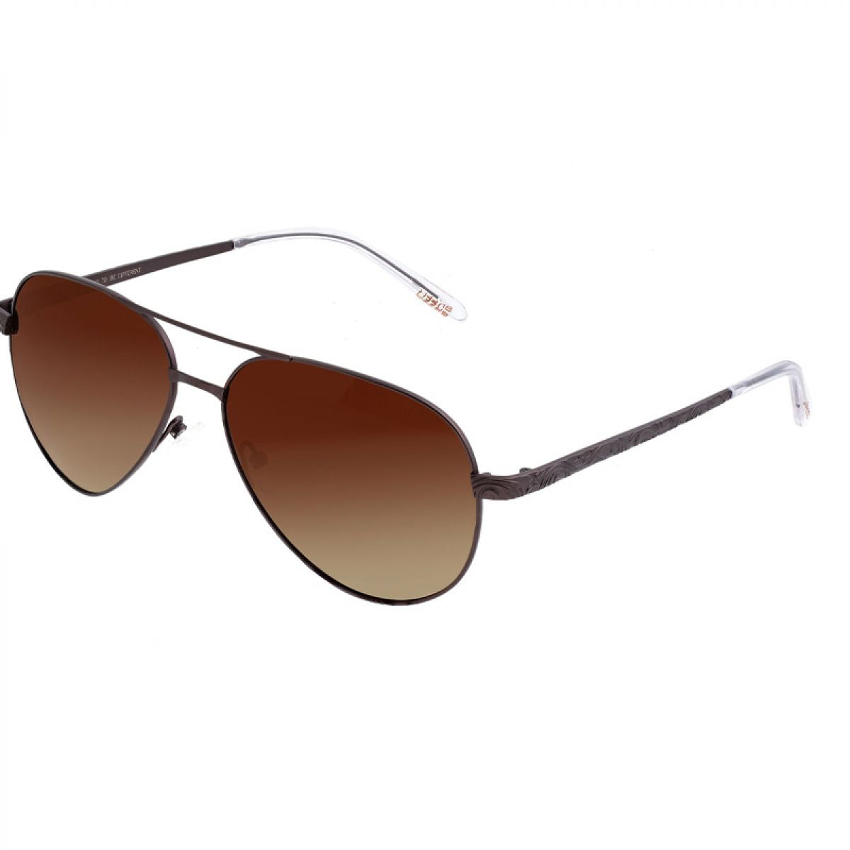 Frame: Brown Titanium Aviator; Arm: Brown Titanium; Earpiece: Clear Acetate; Lens: Brown Multi-Layer Triacetate Cellulose (TAC); Mirrored Lens: No; Gradient Lens: Yes; Polarization: Optical Quality; UV Protection: 100% UVA/UVB; Hinge: Standard Stainless Steel; Adjustable Nosepads: Yes; Lens Width: 62mm; Lens Height: 50mm; Frame Width: 155mm; Temple Length: 150mm; Bridge Width: 16mm.