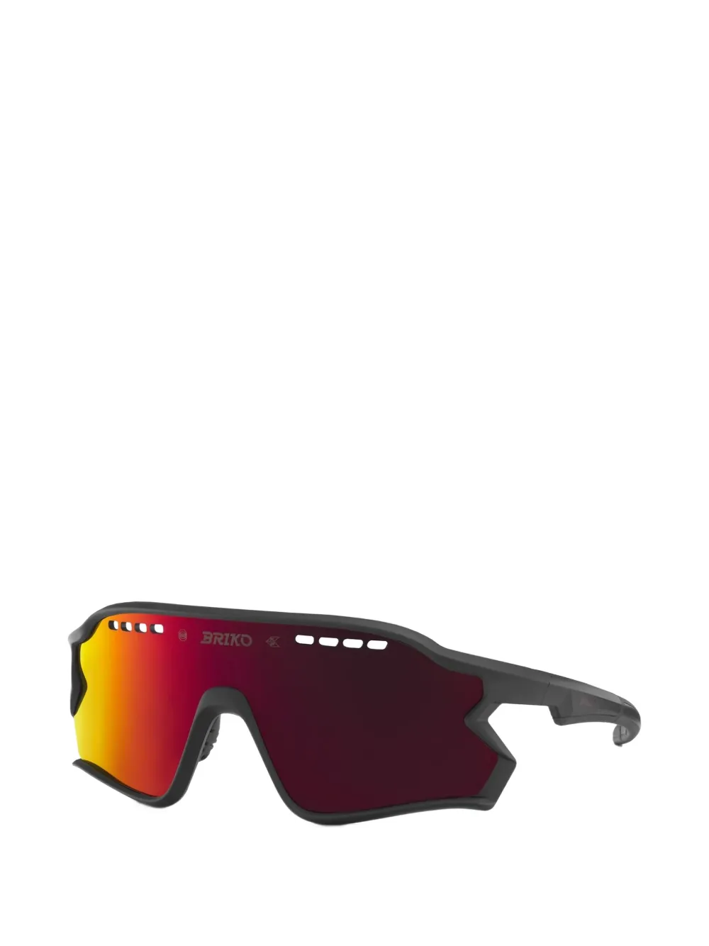 zwart shield montuur gespiegelde glazen ventilatie-openingen gewelfde pootjes