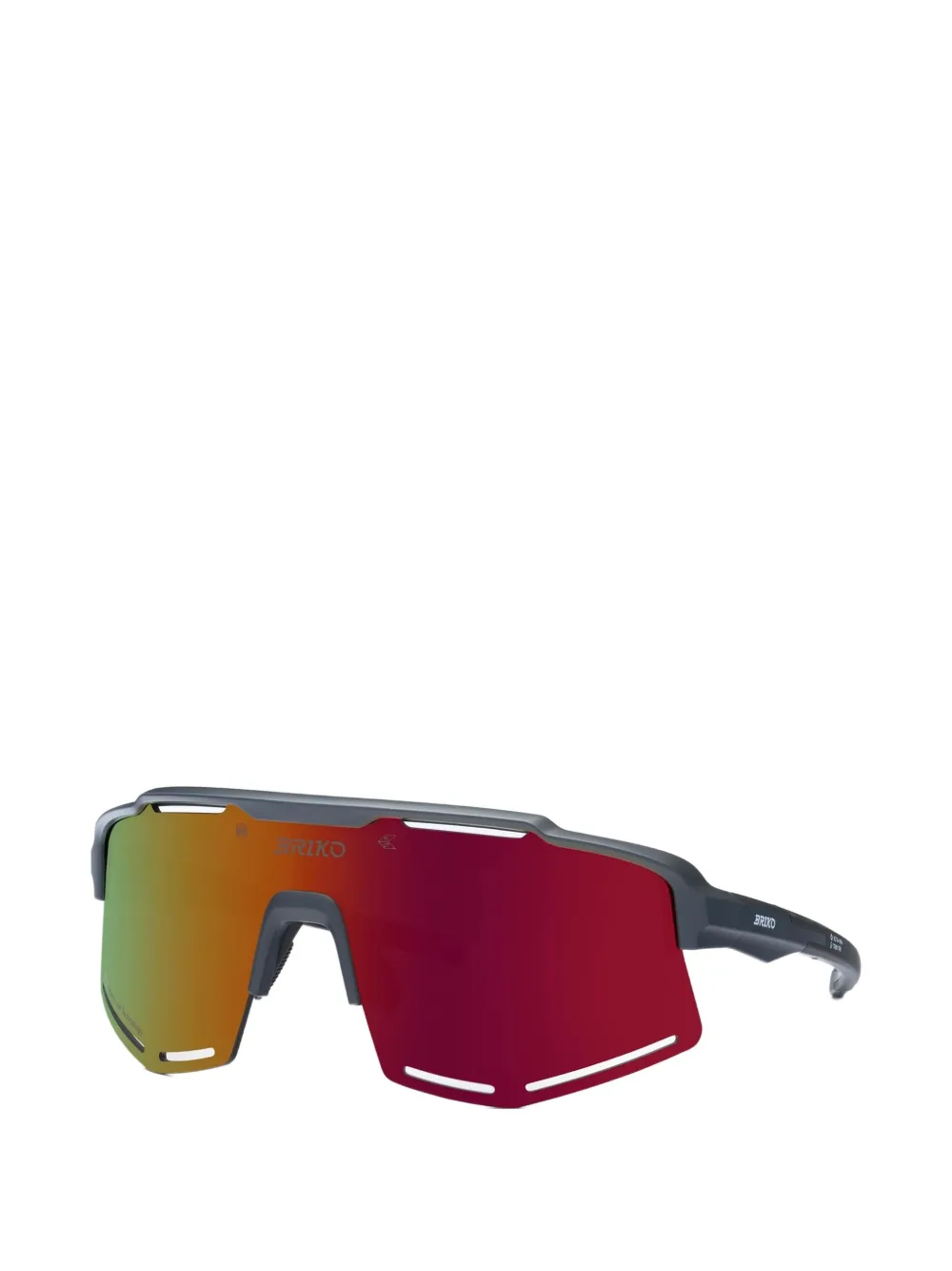 grijs shield montuur glazen met rode spiegels neuskussentjes performance-design Deze bril wordt verkocht met een beschermhoes.
