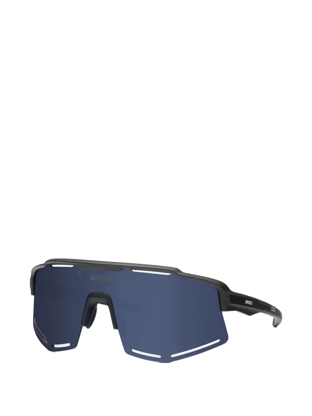 zwart shield montuur donkere glazen neuskussentjes gripvaste uiteinden van de pootjes Deze bril wordt verkocht met een beschermhoes.