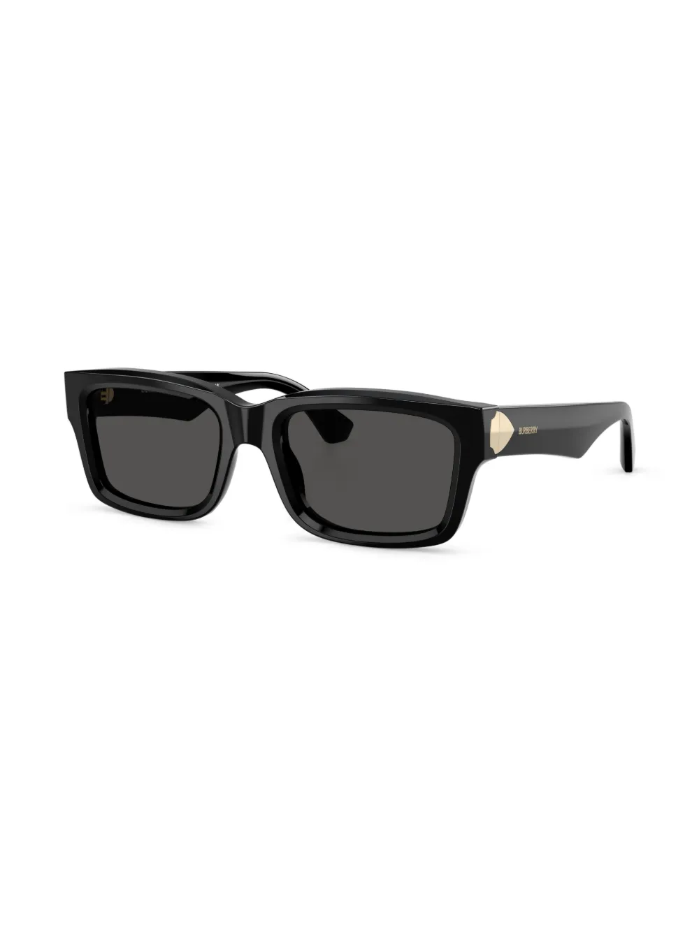 zwart acetaat logoprint op de brillenpoot vierkant montuur grijze glazen rechte pootjes gebogen uiteinden Deze bril wordt verkocht met een beschermhoes.