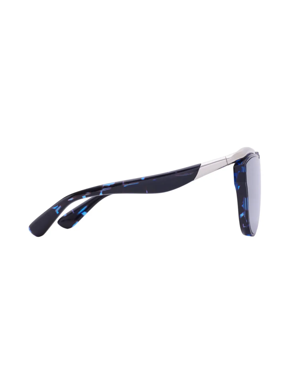 blauw metaal shield montuur grijze glazen neuskussentjes gebogen uiteinden Deze bril wordt verkocht met een beschermhoes. Als je dit uniseks item wilt kopen, wees je ervan bewust dat het matensysteem voor heren wordt gebruikt.