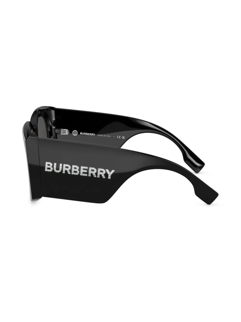 Zwart, acetaat, gekleurde glazen, logoprint op het pootje en rechte afwerking. Deze bril wordt verkocht met een beschermhoes..
