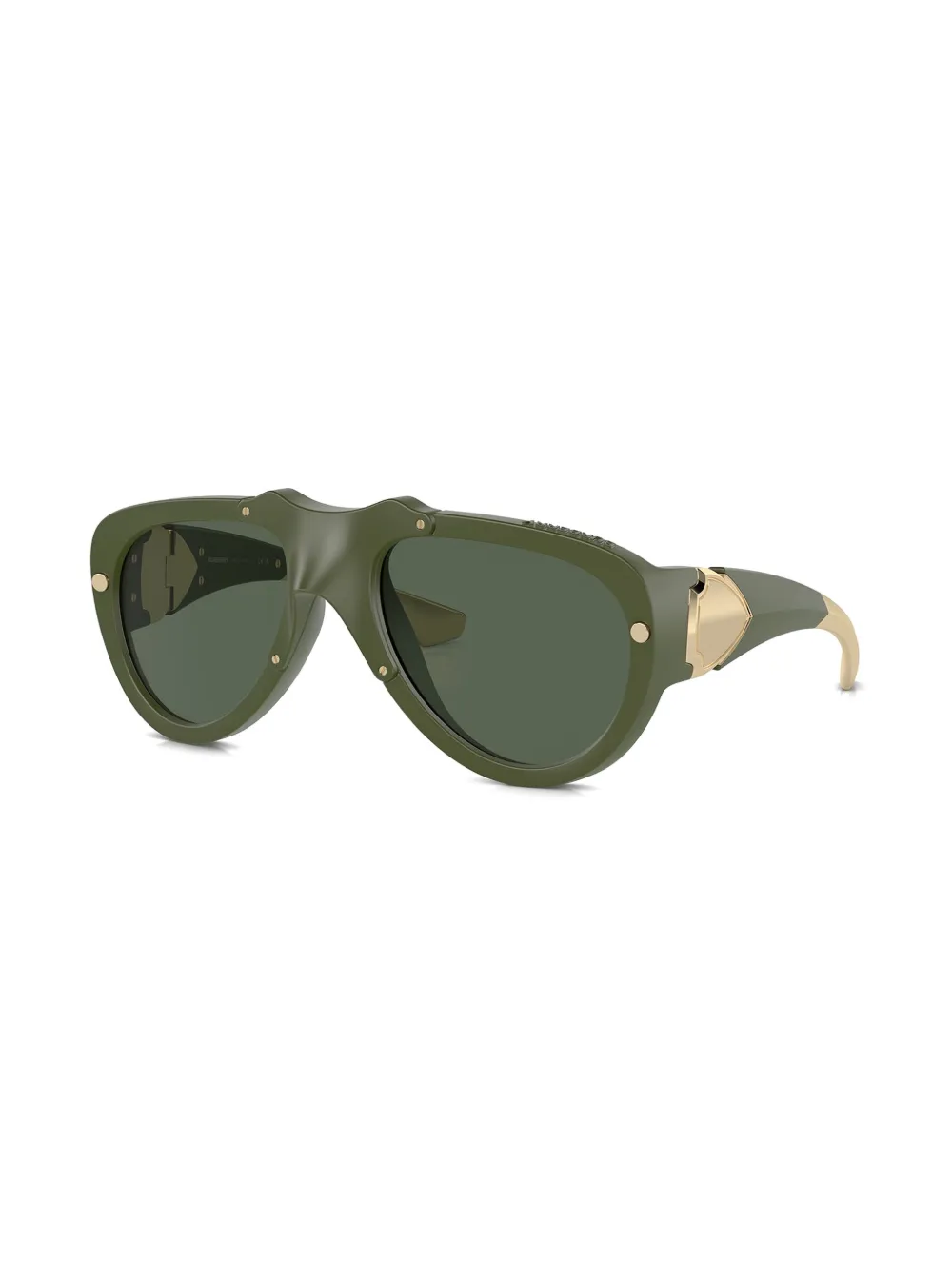 mosgroen acetaat matte afwerking shield montuur groen getinte glazen glazen met UV-bescherming goudkleurig materiaal klinknageldetails afwerking met logo-reliëf gebogen uiteinden Deze bril wordt verkocht met een beschermhoes.