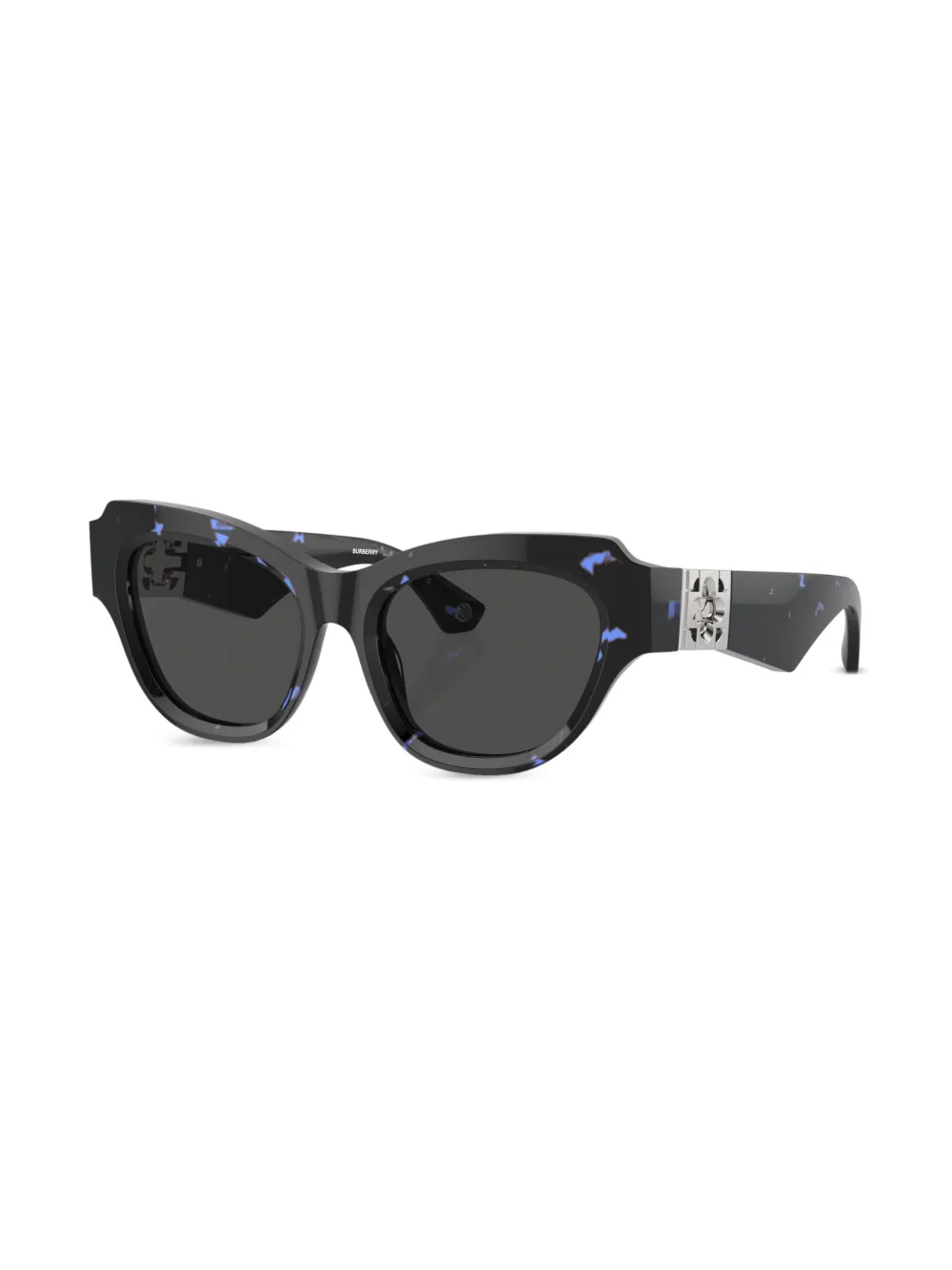 hemelsblauw/zwart acetaat schildpad montuur cat-eye montuur grijze glazen glazen met UV-bescherming monogram detail oversized pootjes gebogen uiteinden Deze bril wordt verkocht met een beschermhoes.