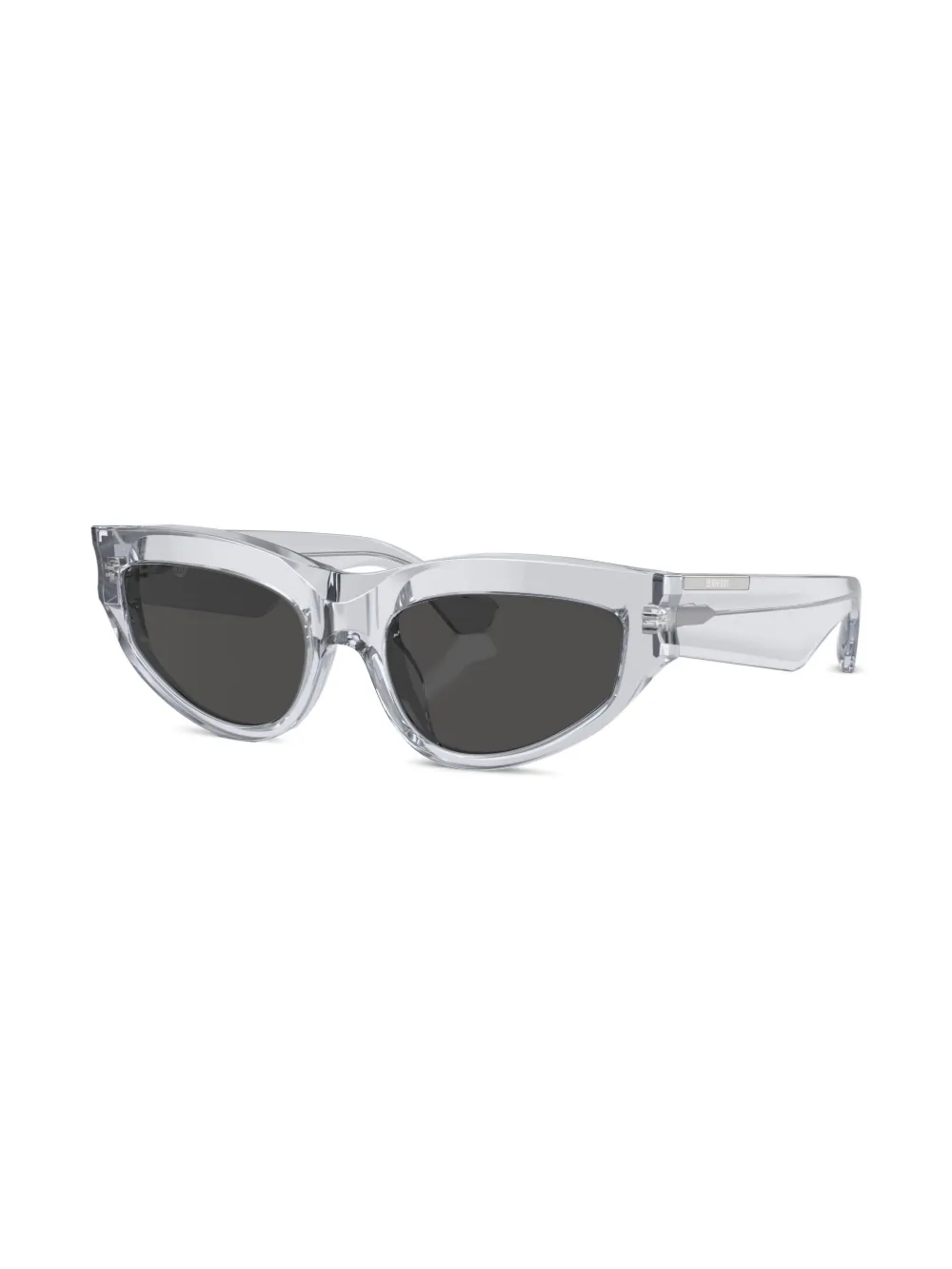 lichtgrijs acetaat doorzichtig design cat-eye montuur grijze glazen glazen met UV-bescherming logoplakkaat op de mouw oversized pootjes gebogen uiteinden Deze bril wordt verkocht met een beschermhoes.