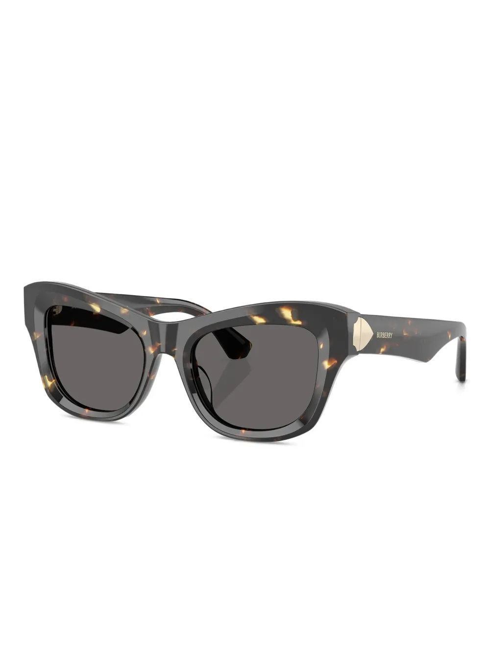 bruin geometrisch montuur acetaat goudkleurige details donkergrijze glazen schildpadschild-patroon Deze bril wordt verkocht met een beschermhoes.