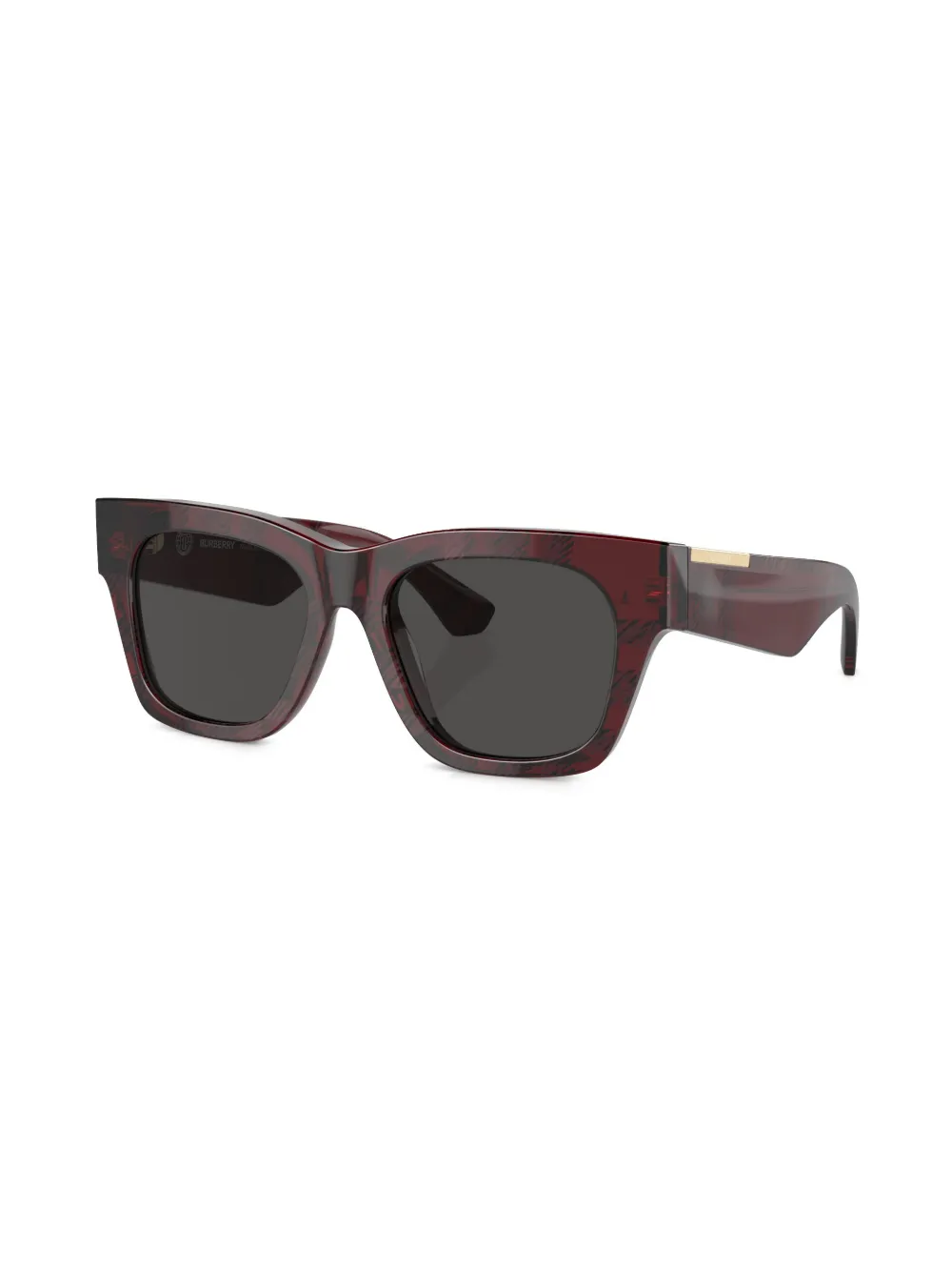 bordeauxrood acetaat geruit Wayfarer montuur grijze glazen glazen met UV-bescherming logoplakkaat op de mouw oversized pootjes gebogen uiteinden Deze bril wordt verkocht met een beschermhoes.