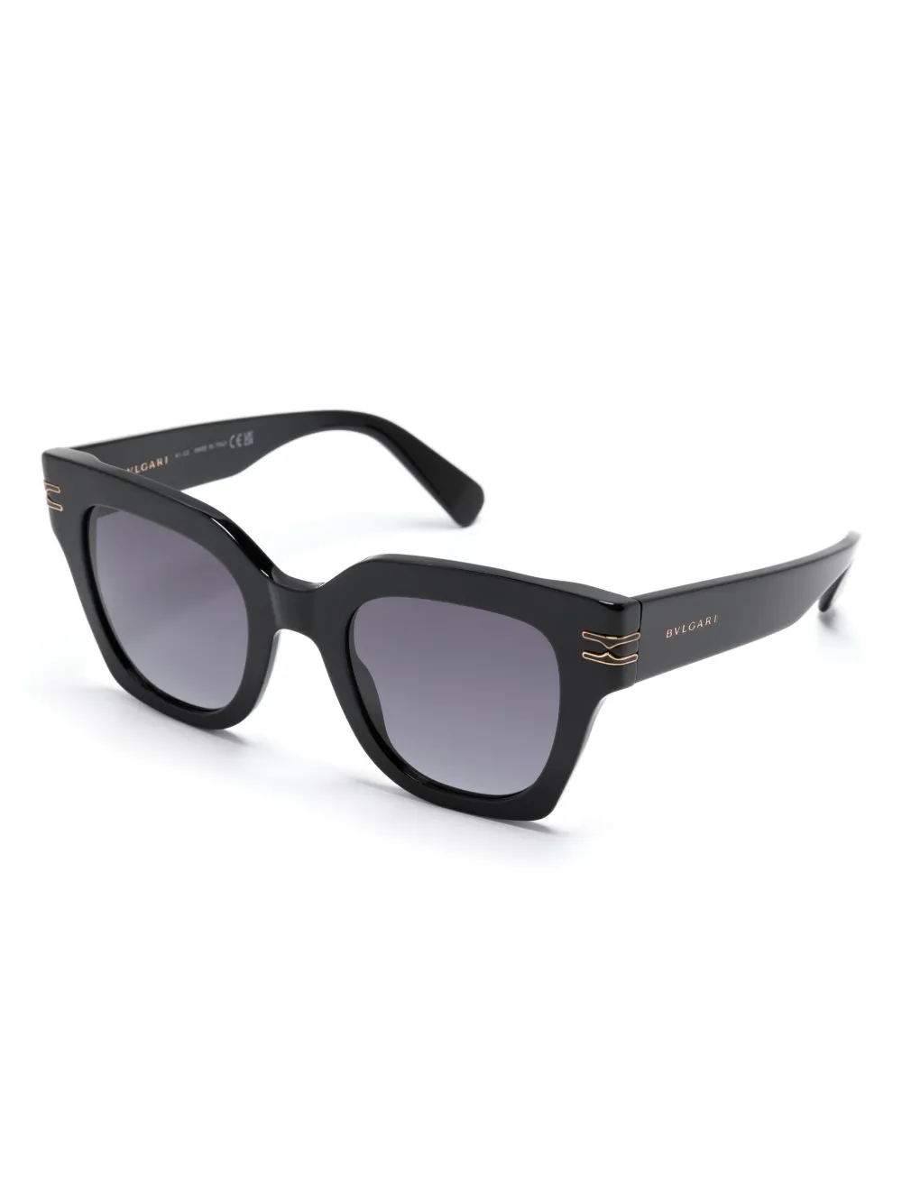 zwart acetaat logoprint op de brillenpoot grijze glazen vierkant montuur rechte pootjes gebogen uiteinden Deze bril wordt verkocht met een beschermhoes.