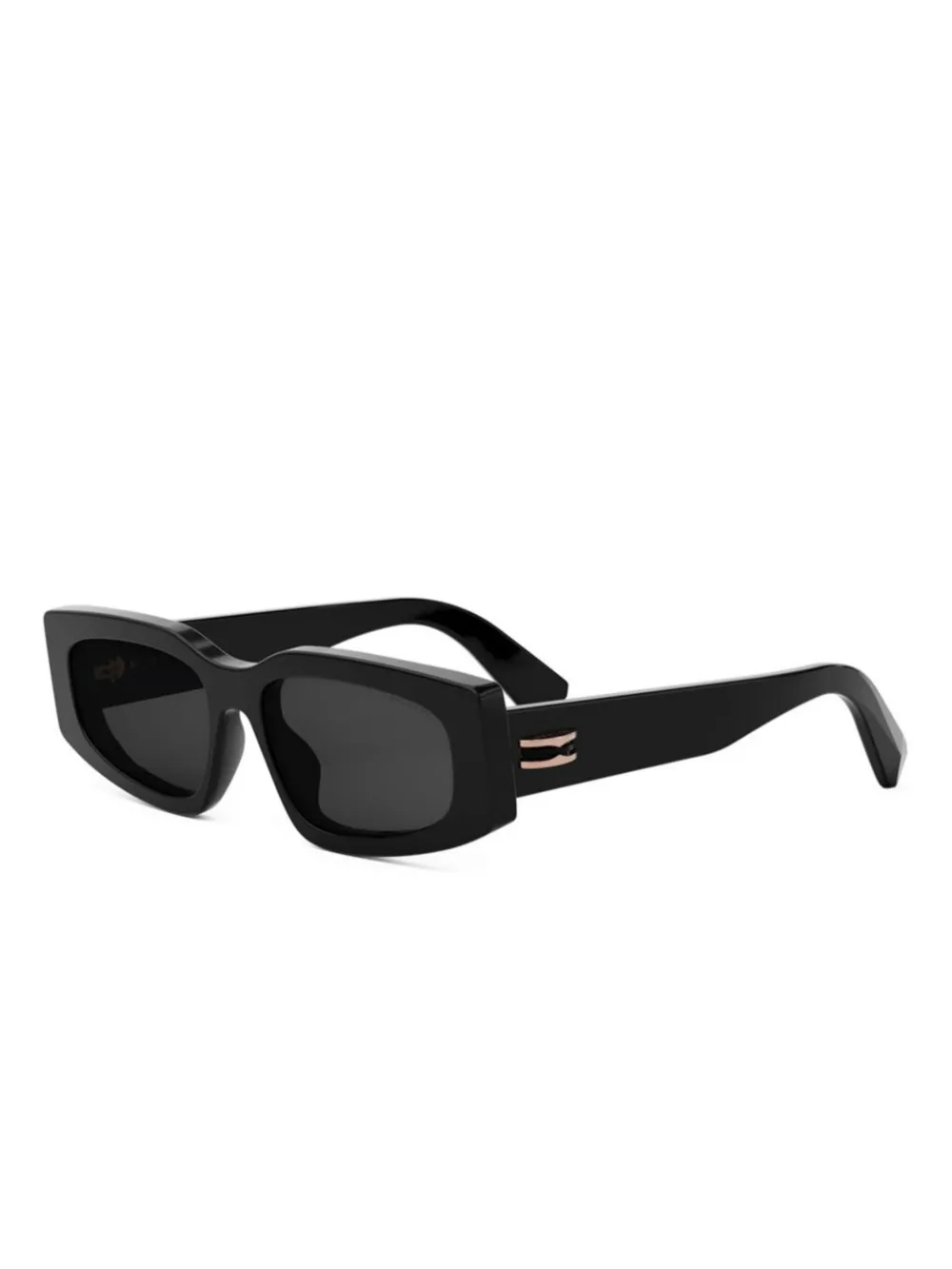 zwart rechthoekig montuur gekleurde glazen gebogen uiteinden Deze bril wordt verkocht met een beschermhoes.